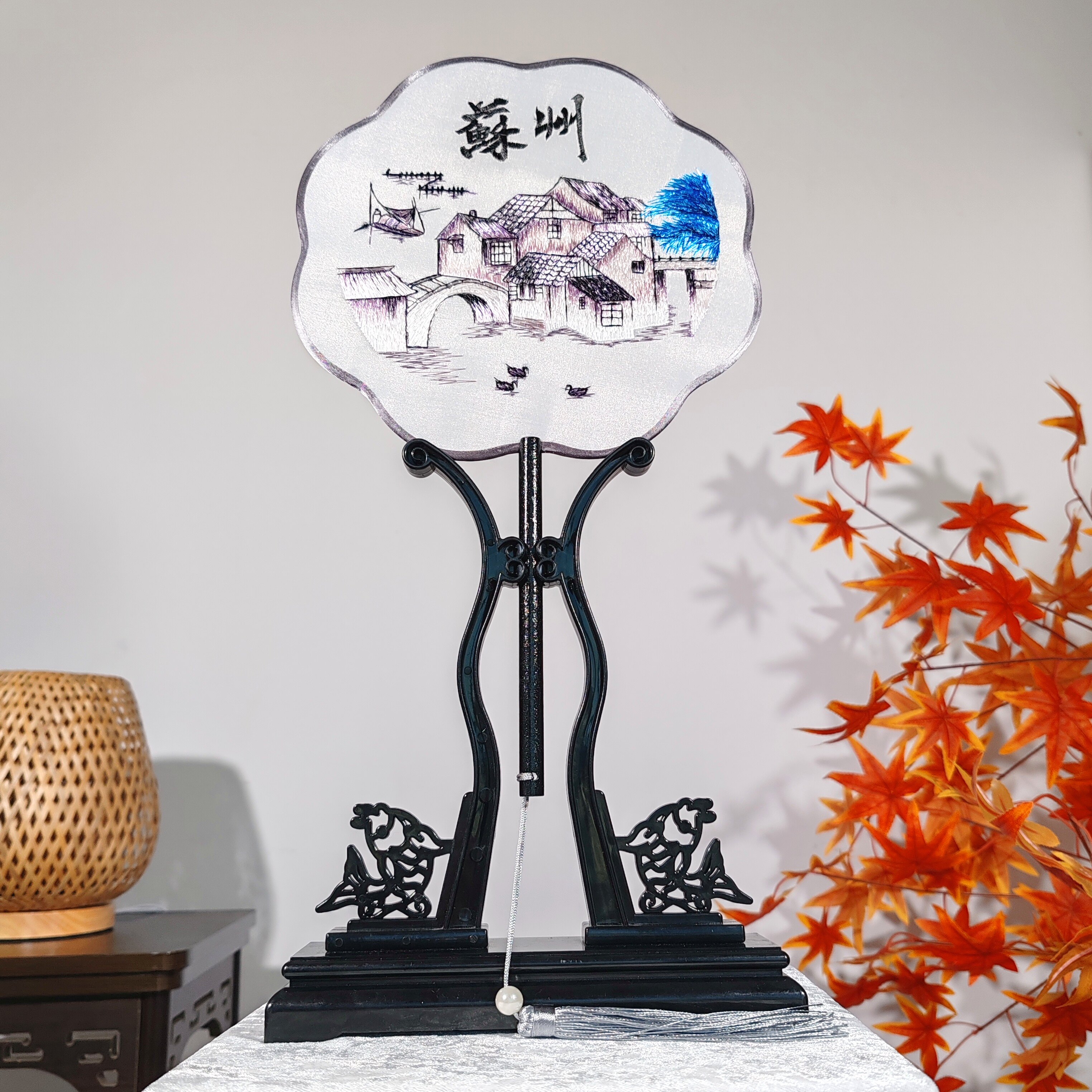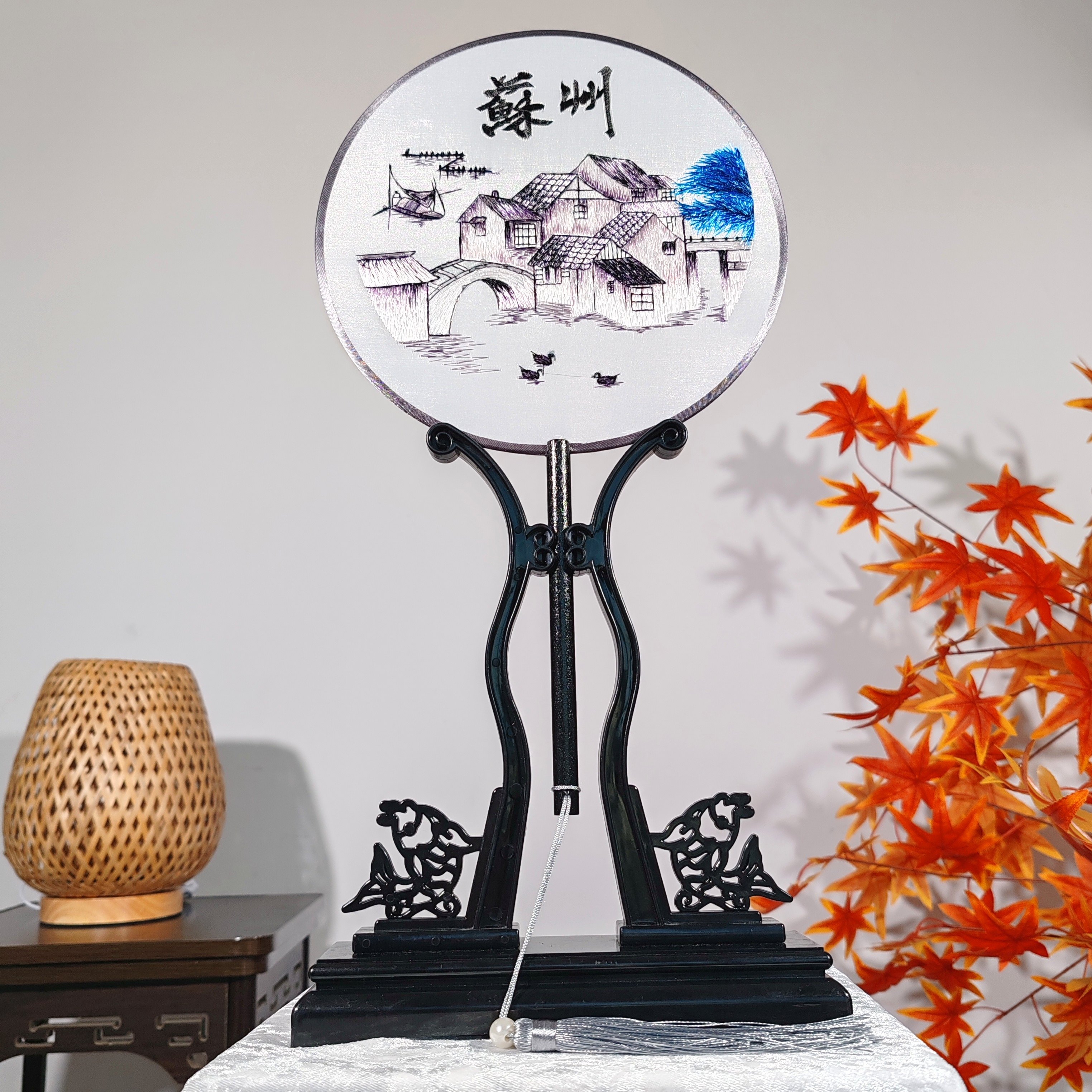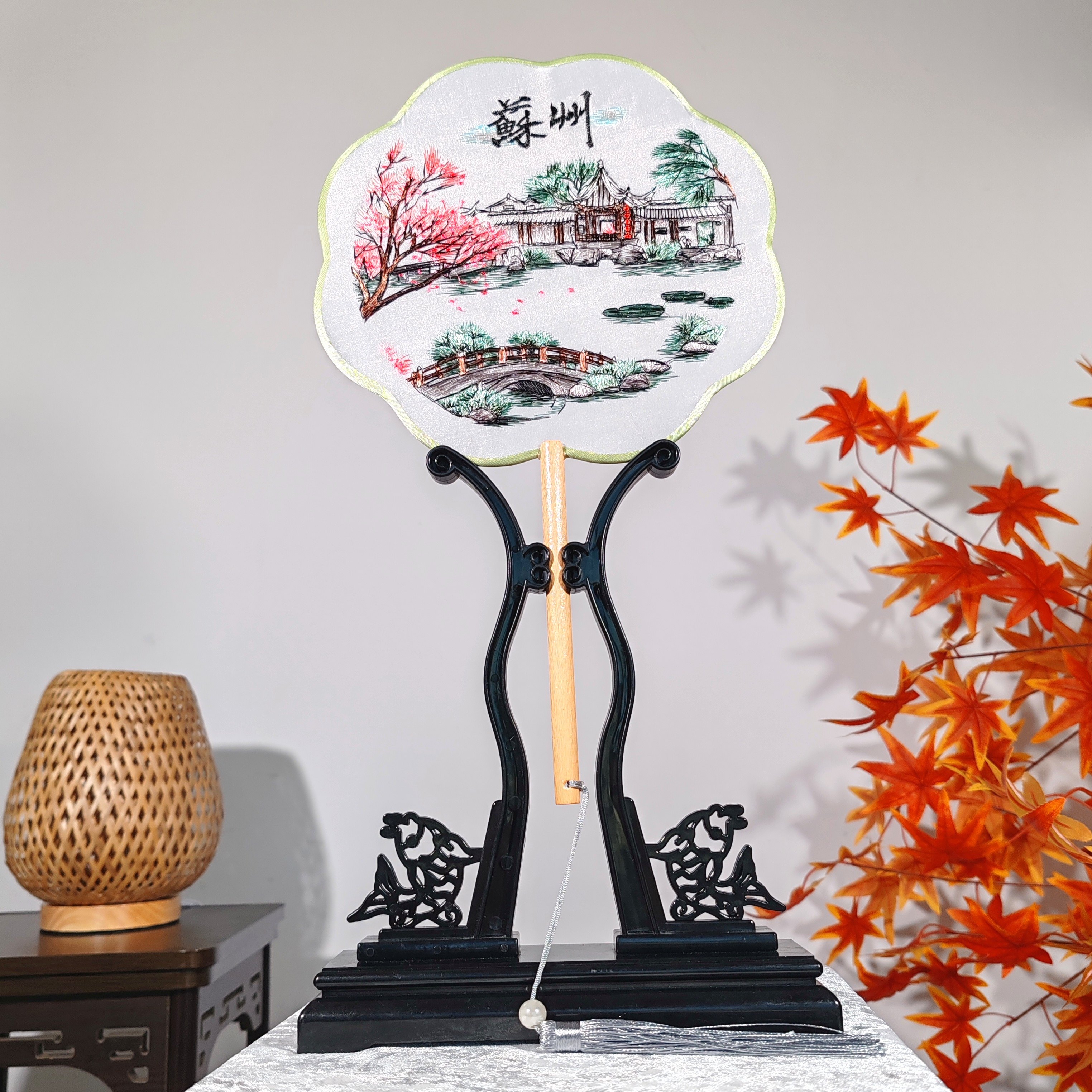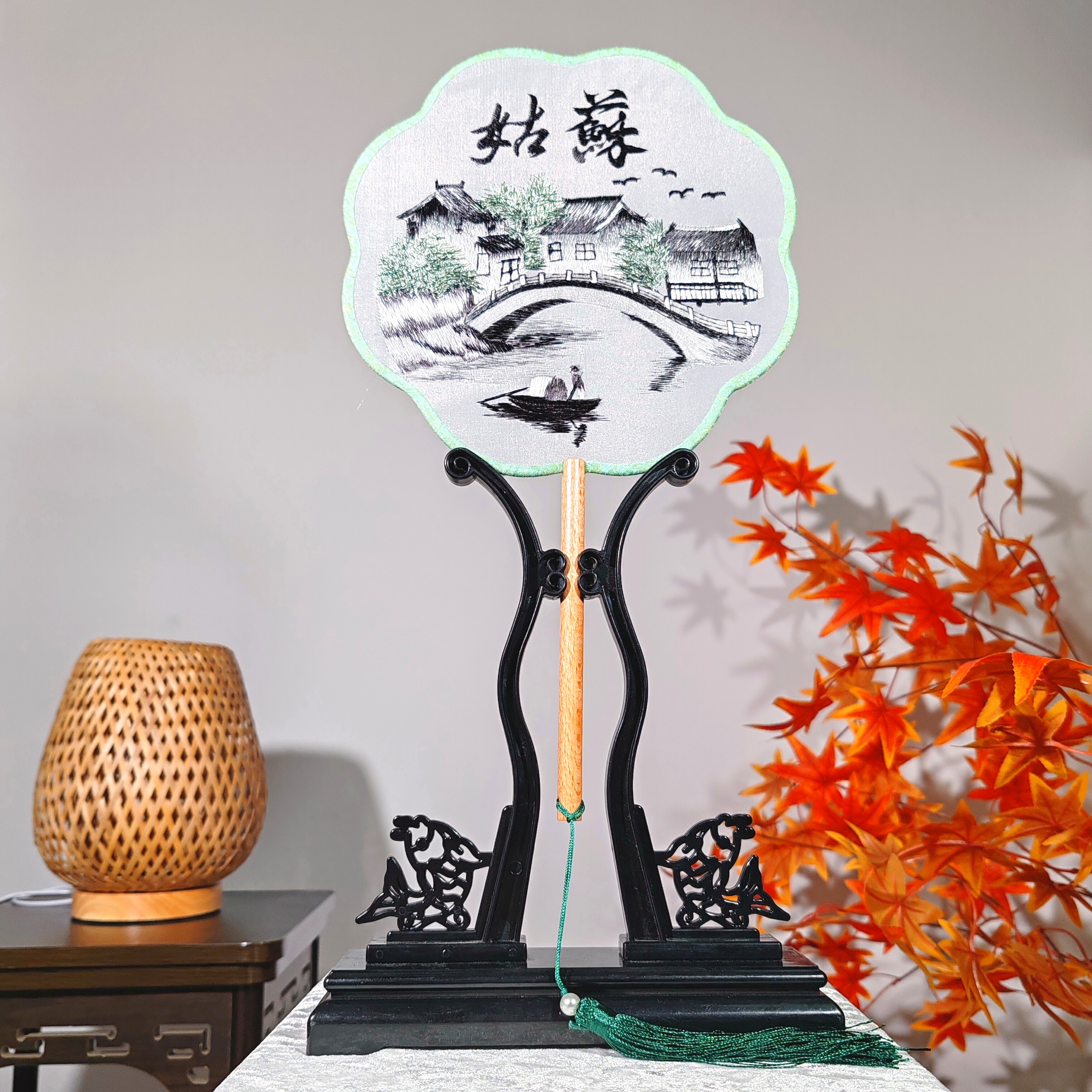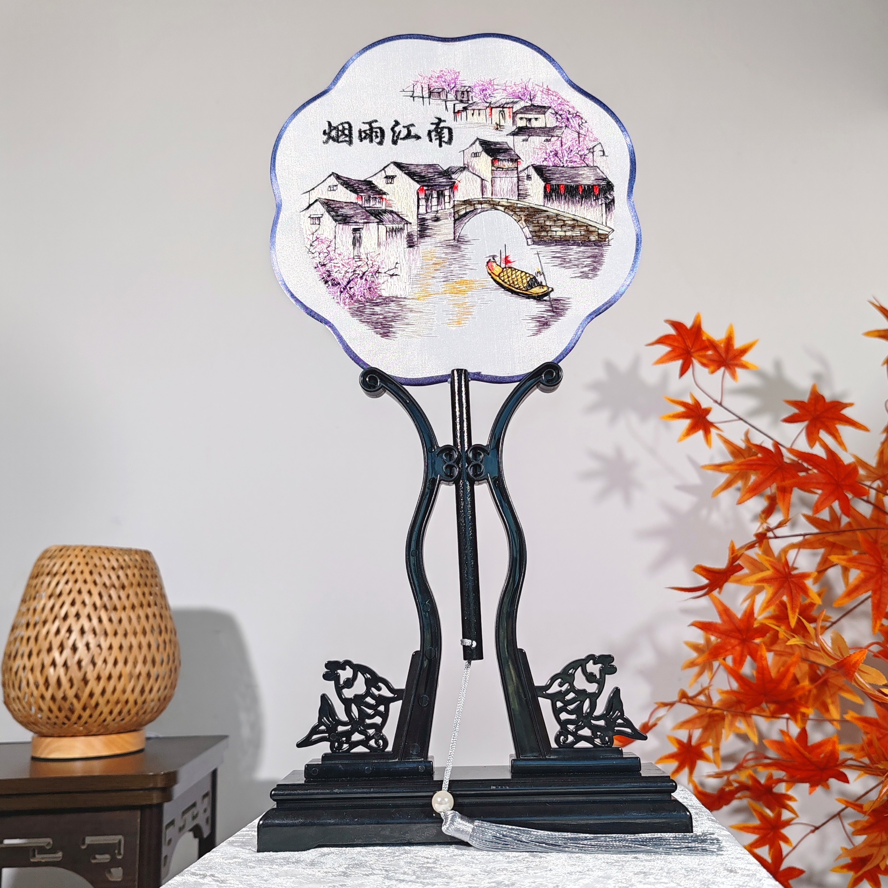 📚 春江水暖水墨江南双面绣苏绣刺绣团扇古风舞蹈走秀绣花扇子送礼
