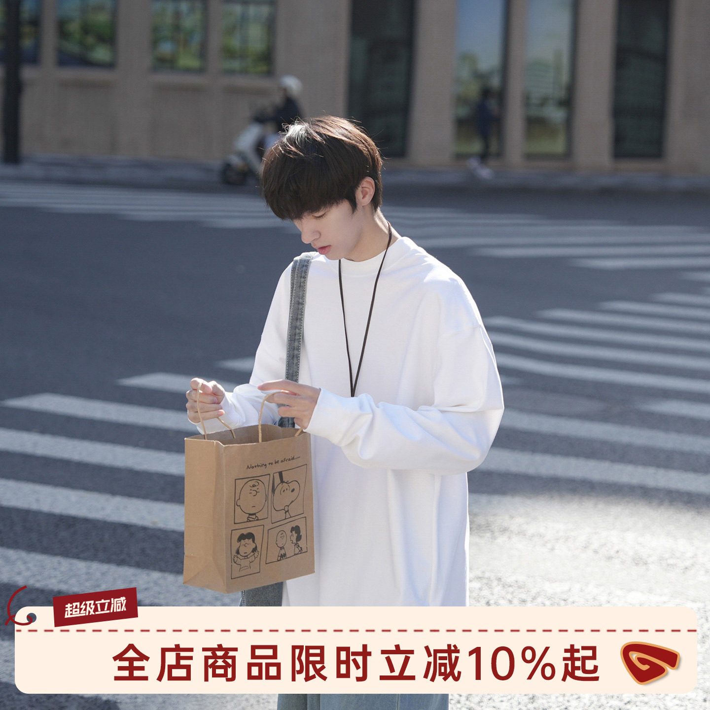 📚 GOOZI MADE重磅纯色长袖T恤男春季内搭速干上衣青少年圆领打底衫