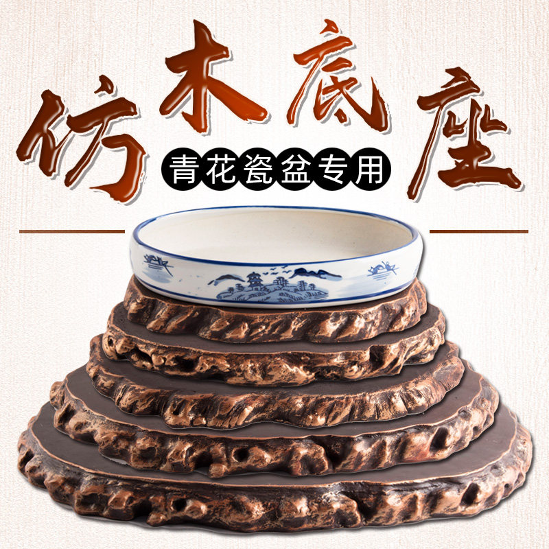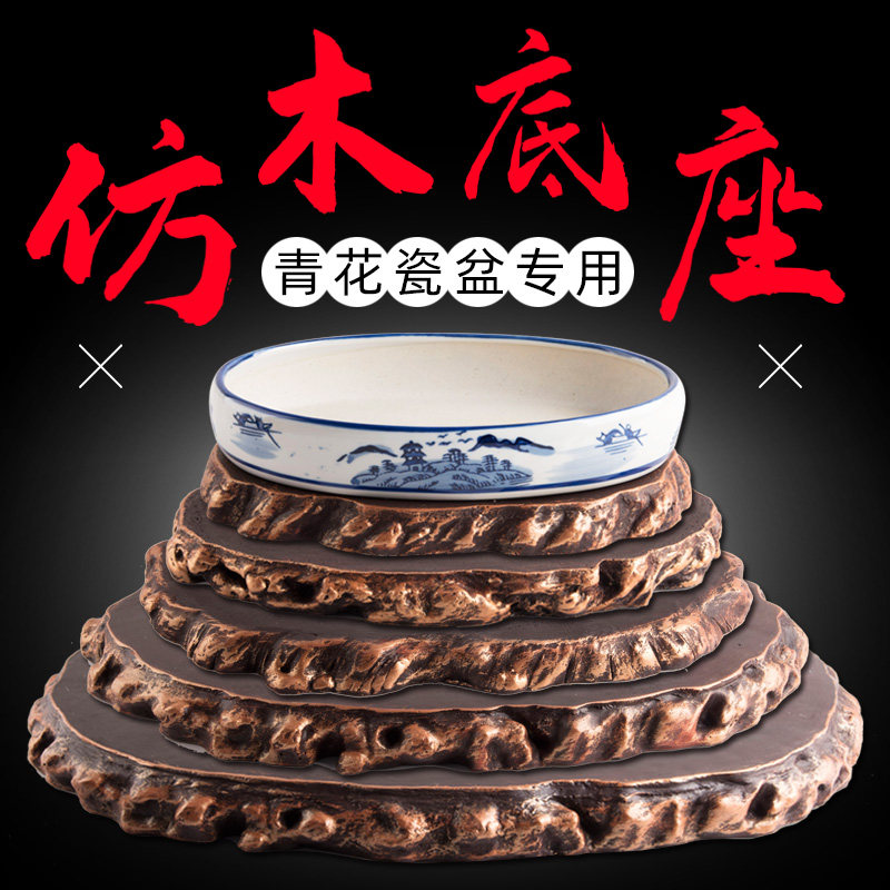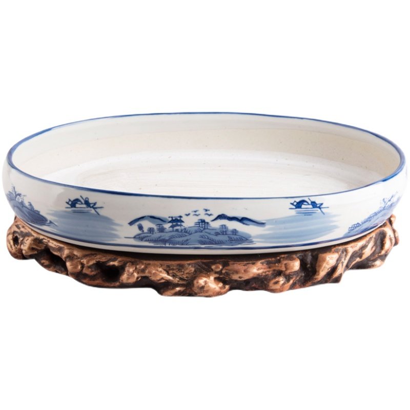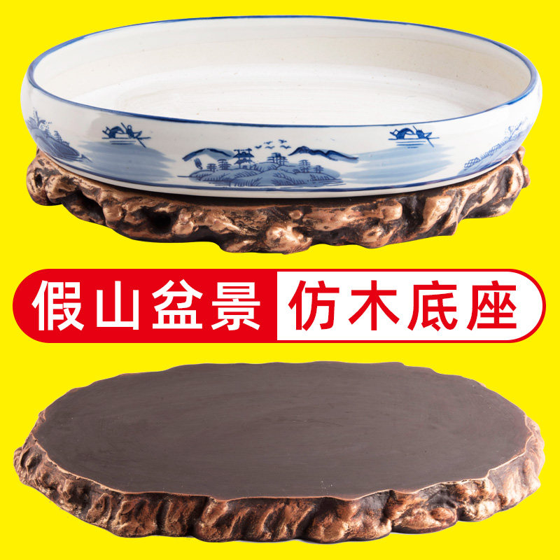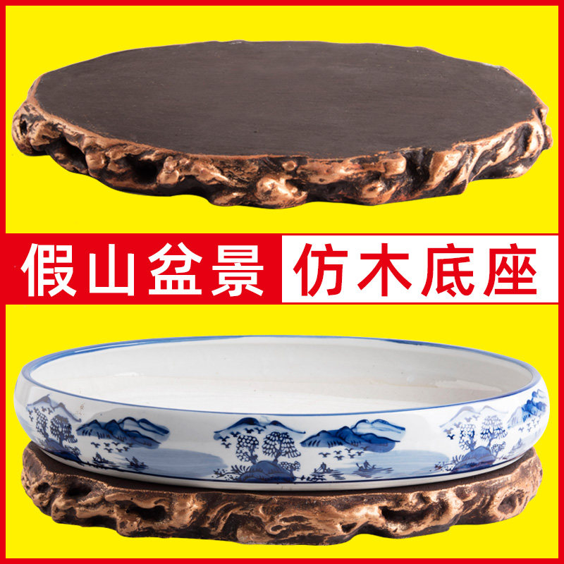 📚 吸水石花盆底座专用托盘上水石盆景假山奇石垫高摆件青花瓷盆底托