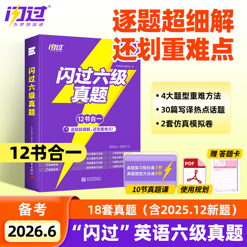 📚 【六级专项】闪过英语六级真题备考2026年06月大学六级英语考试卷子通关学习资料历年CET6级词汇单词书听力阅读写作文模拟专项训练