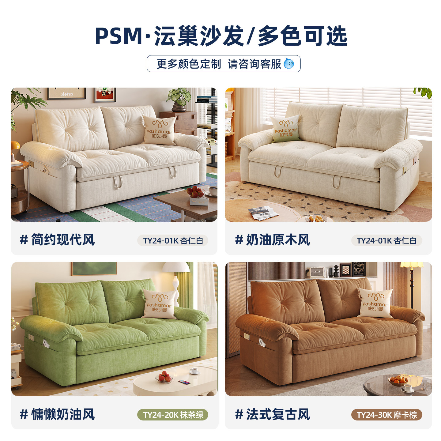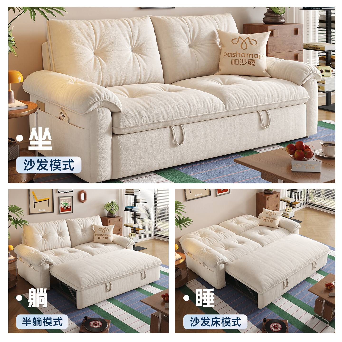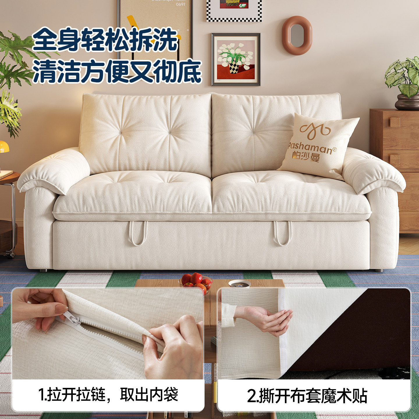 📚 帕沙曼可拆洗沙发床单双人两用床小户型折叠云朵沄巢沙发简约书房