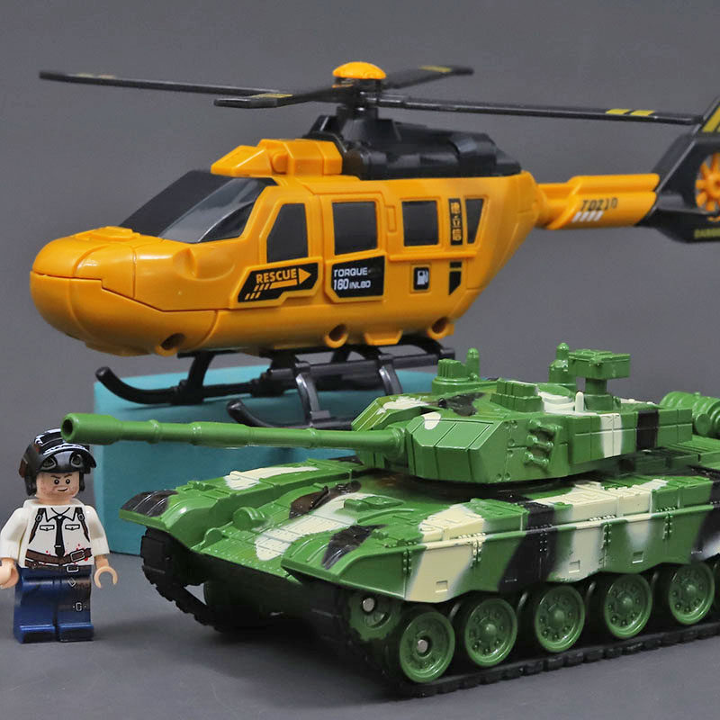 📚 开盖救援直升机玩具旋转螺旋桨战斗机男孩宝宝仿真军事坦克车模型