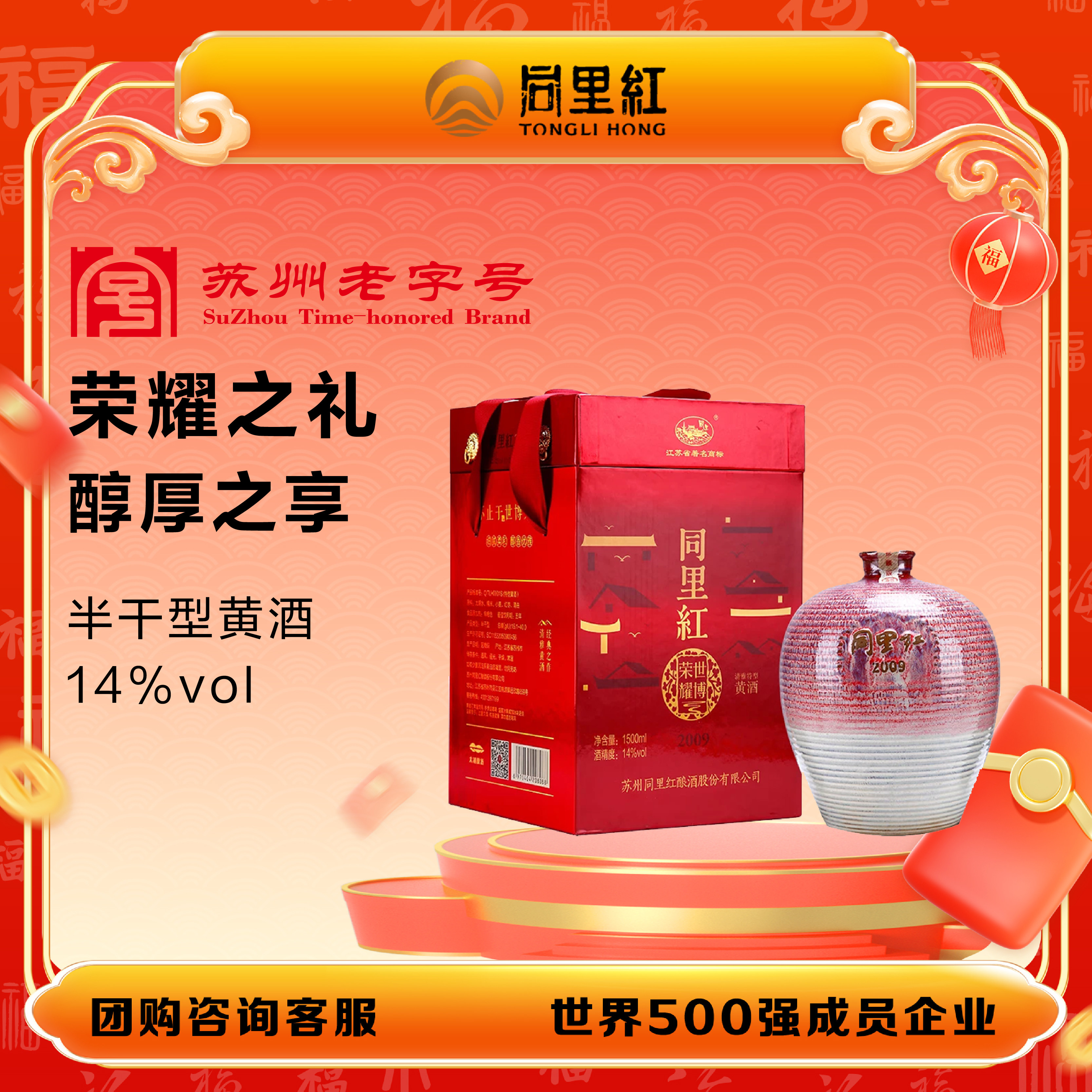 📚 同里红世博荣耀高端黄酒14度1.5L礼盒装珍藏版花雕送礼节酒坛装