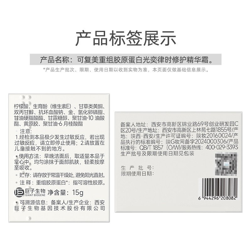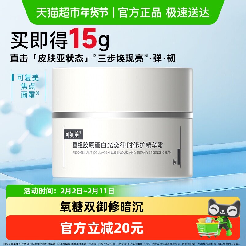 📚 可复美焦点面霜15g重组胶原蛋白修护舒缓补水保湿滋润清爽面霜