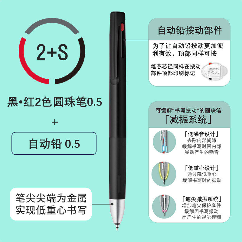 📚 日本zebra斑马模块笔三合一blen减振三色多色多功能笔减震笔3色笔中性油性中油笔自动铅笔芯0.5mm官方旗舰店