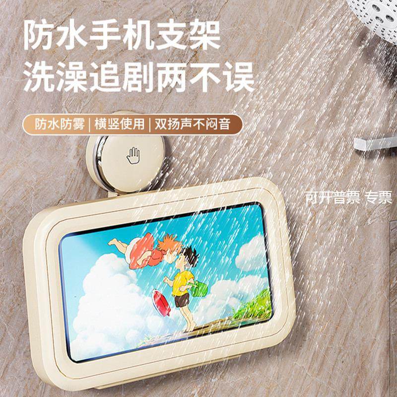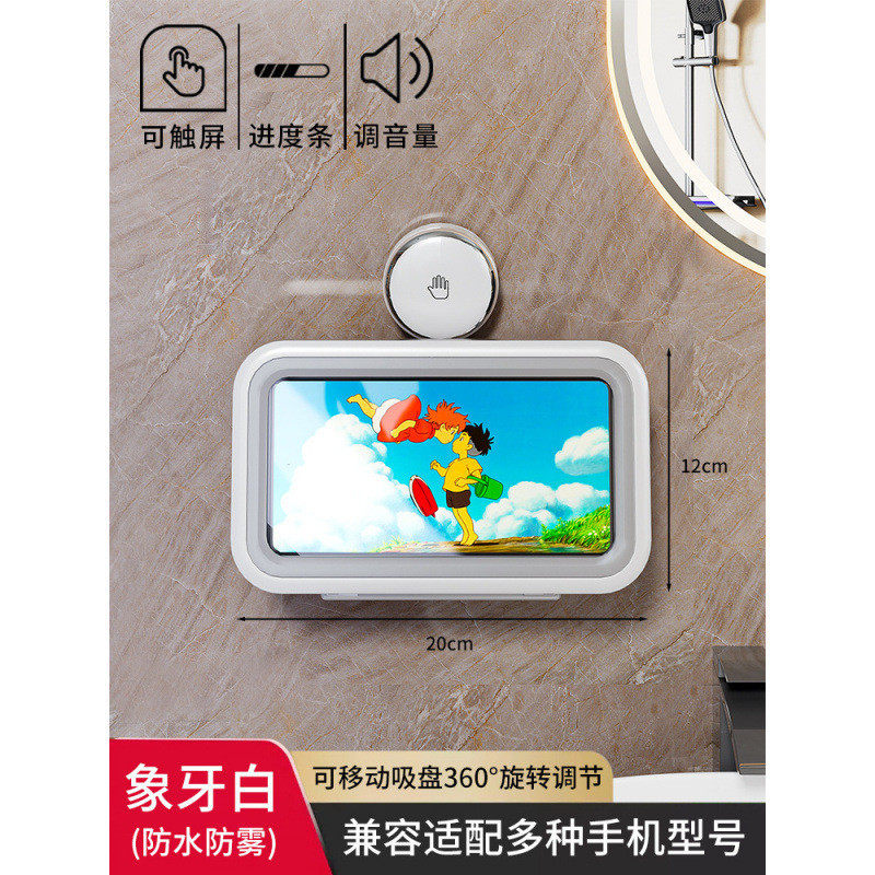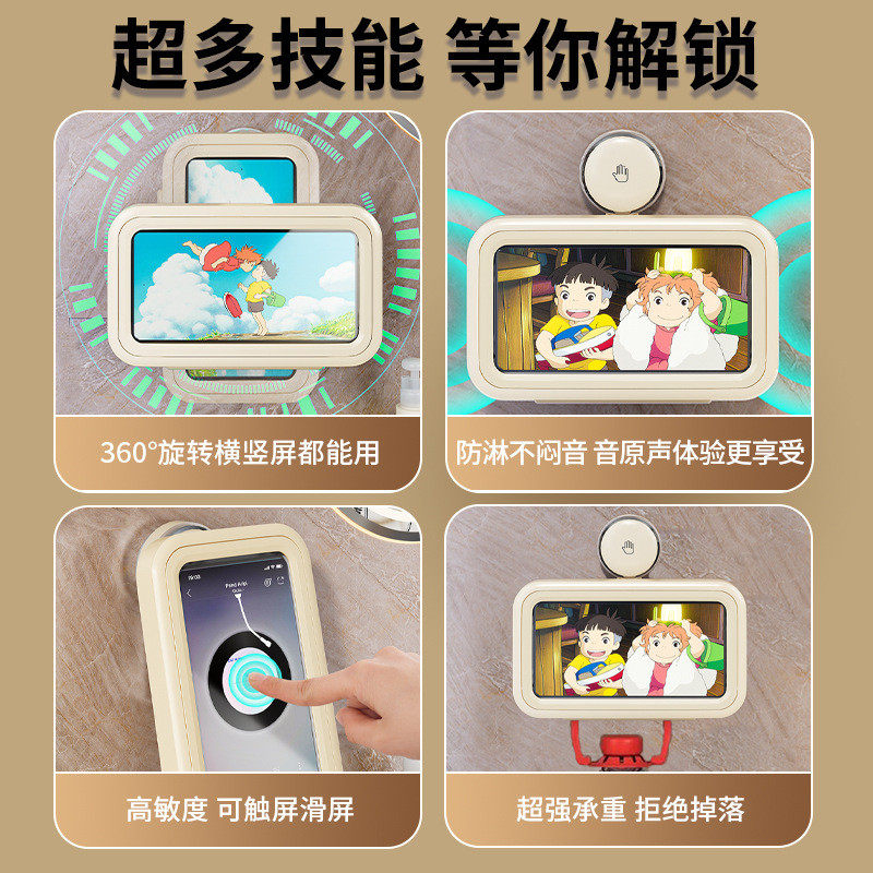 📚 吸盘浴室手机架防水手机盒手机支架卫生间厕所壁挂式洗澡置物架神