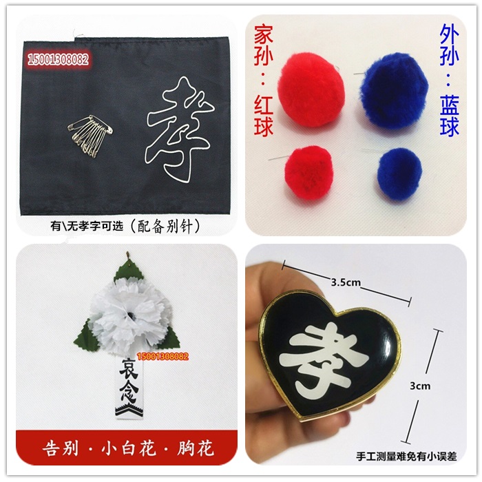 📚 黑纱黑箍白事胸前小白花丧葬殡葬用品孝章孝字牌子孙辈佩戴红蓝球