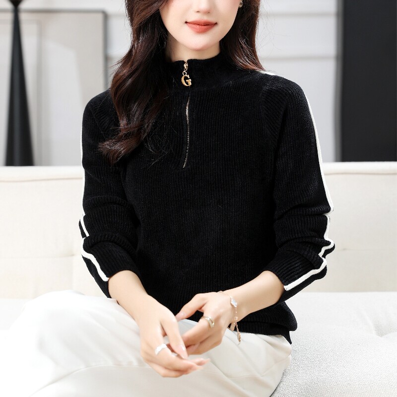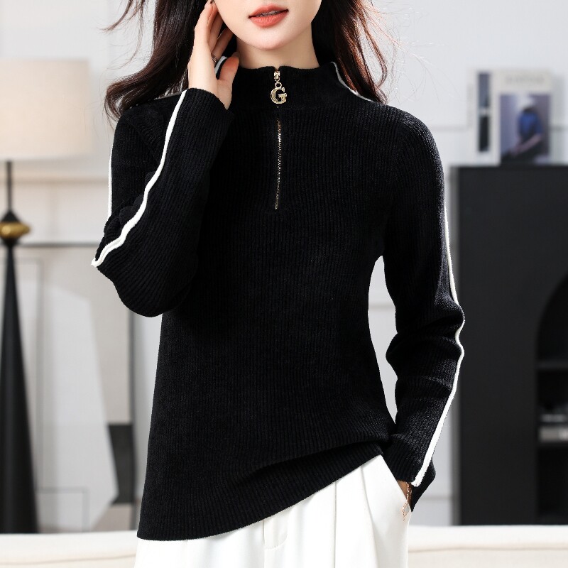 📚 本店实拍&欧货天鹅绒半高领拉链打底衫黑色不起球毛衣加厚新款女