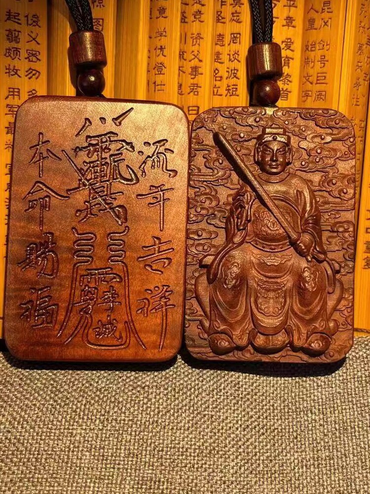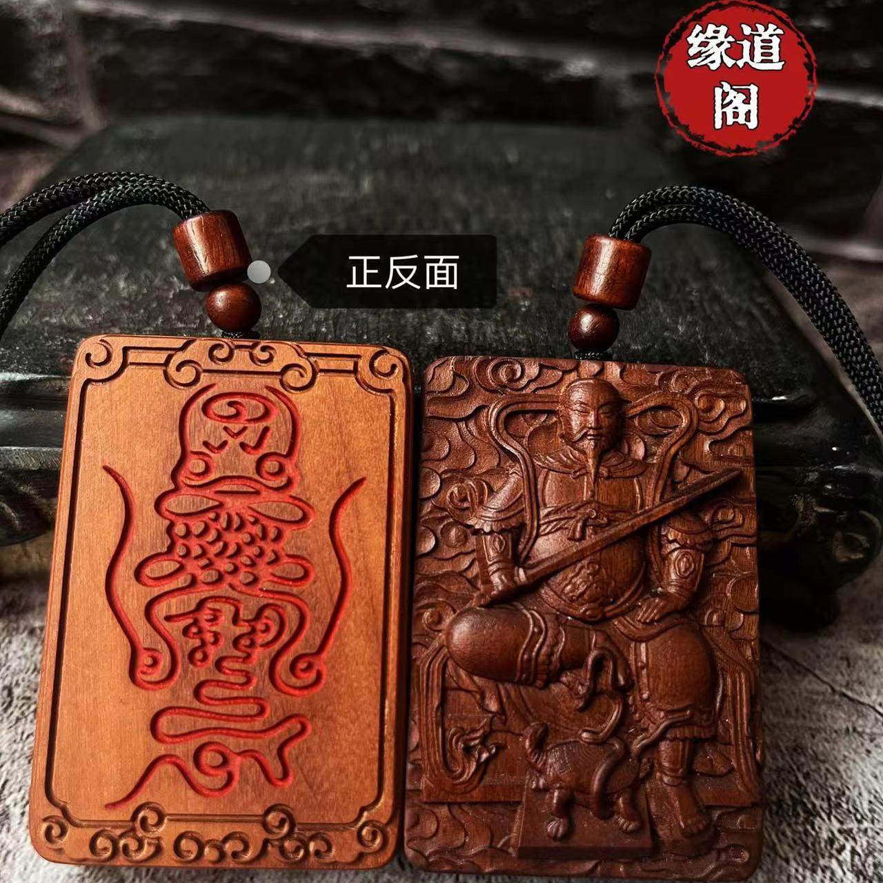 📚 (龙虎山发货)雷击枣木五路财 赵公明 挂件 手把件 吊坠牌