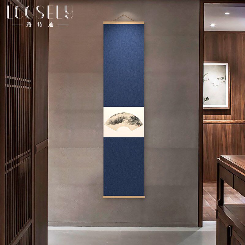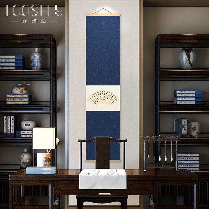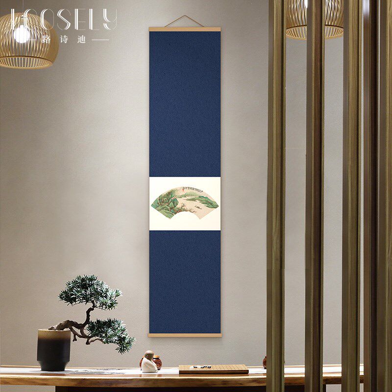 📚 极速禅意新中式扇j面卷轴挂画张大千茶室书房竹帘画玄关走廊竖版