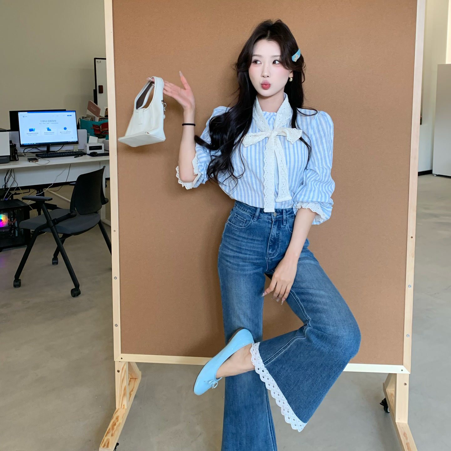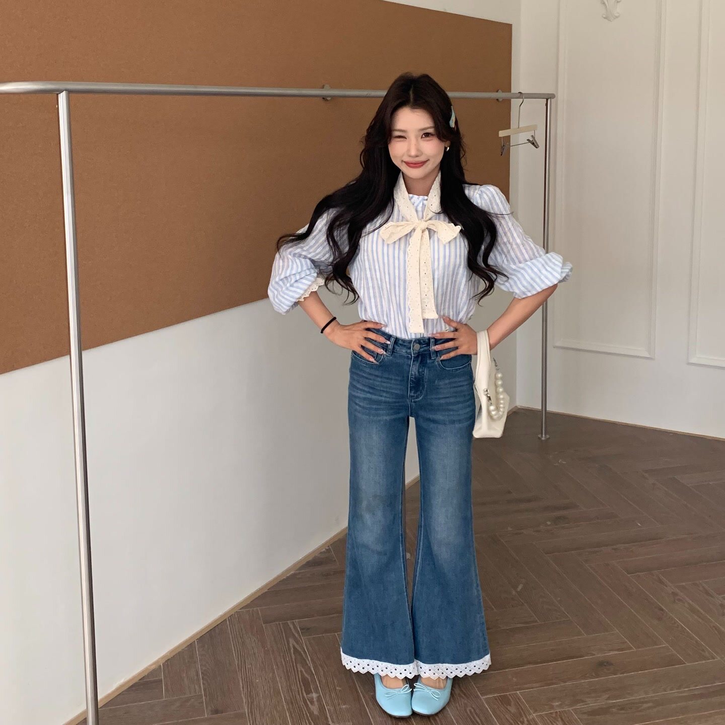 📚 陈六六CHENLIULIU【团宠牛仔】春季韩系精致蕾丝拼接花边牛仔裤
