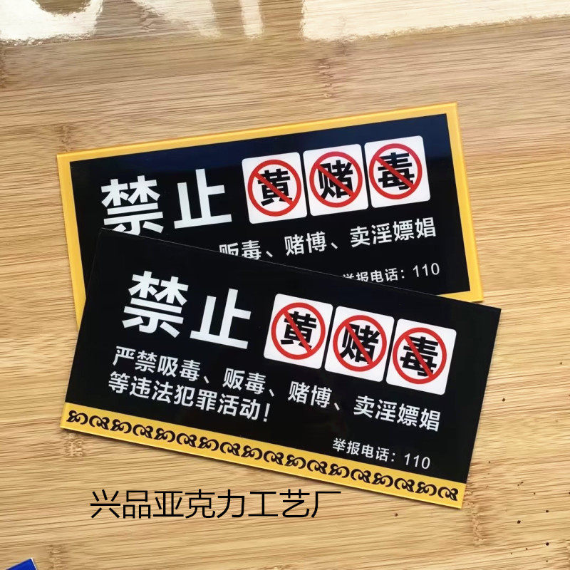 📚 禁止黄赌毒严禁赌博民警提示牌警示牌酒店标识宾馆KTV亚克力标牌