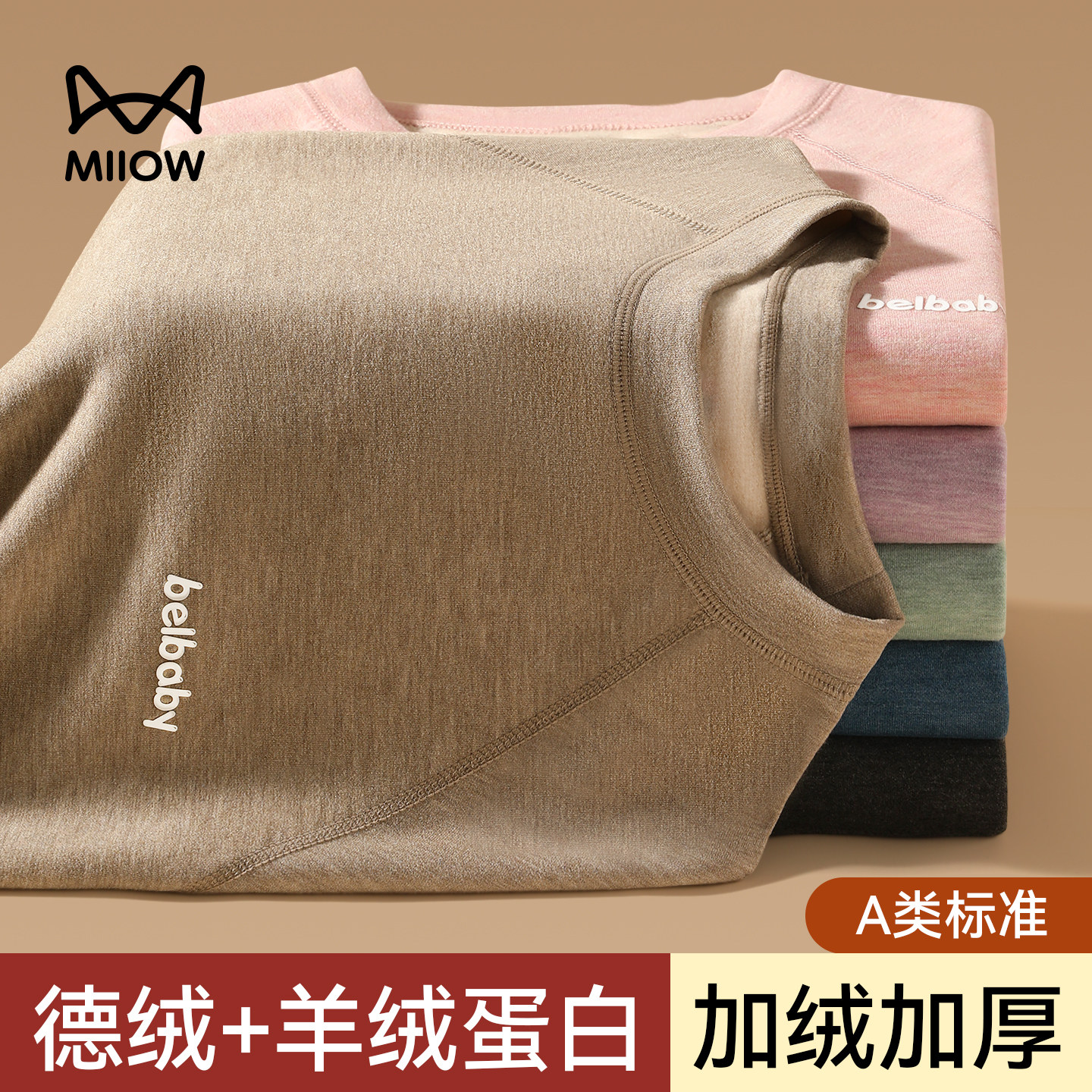 📚 猫人德绒羊绒儿童秋衣秋裤套装男女宝宝大童幼儿保暖内衣加绒加厚