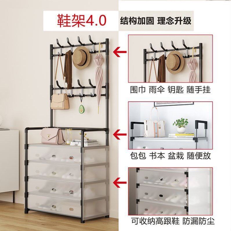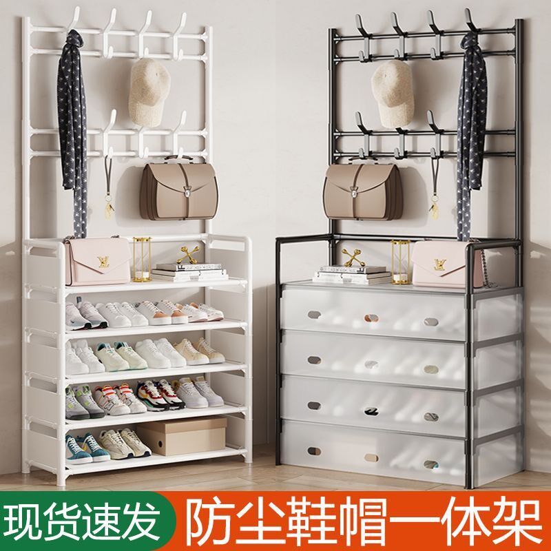 📚 多功能鞋帽一体架衣帽架多层防尘家用门口收纳架奶油风出租屋