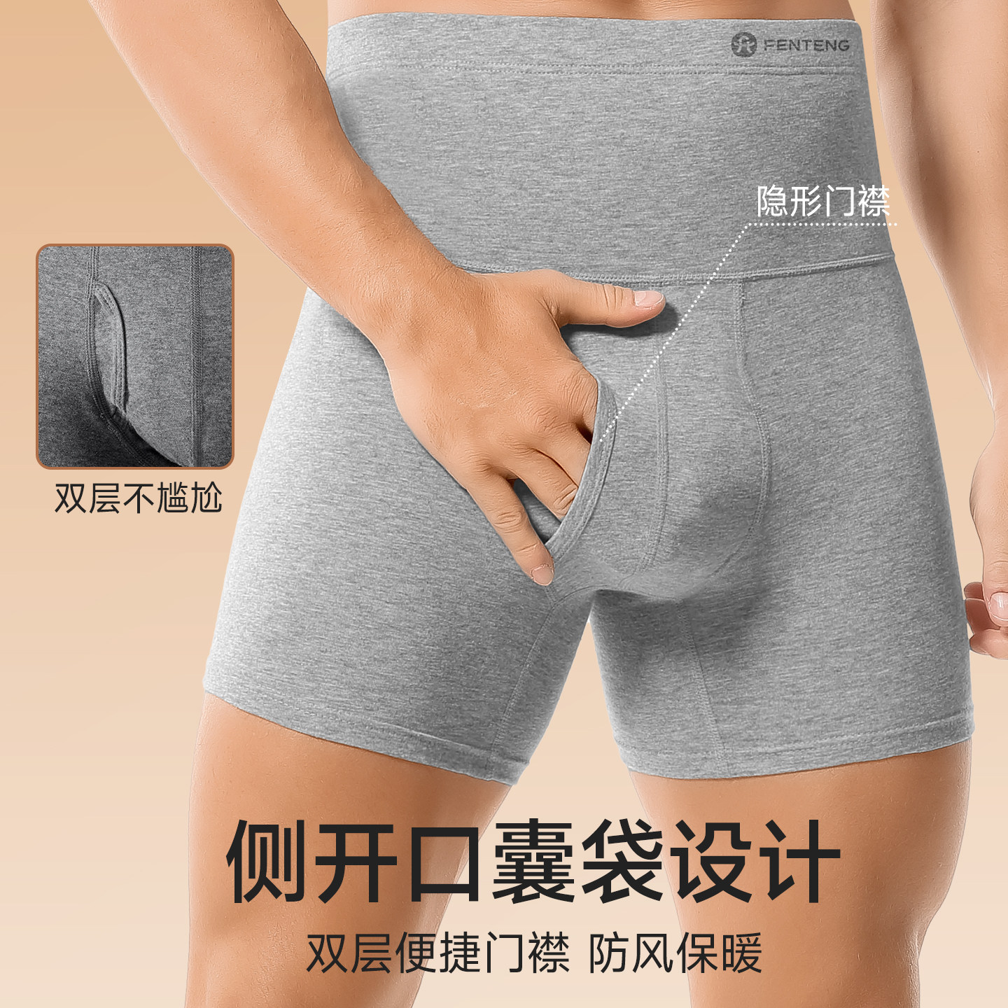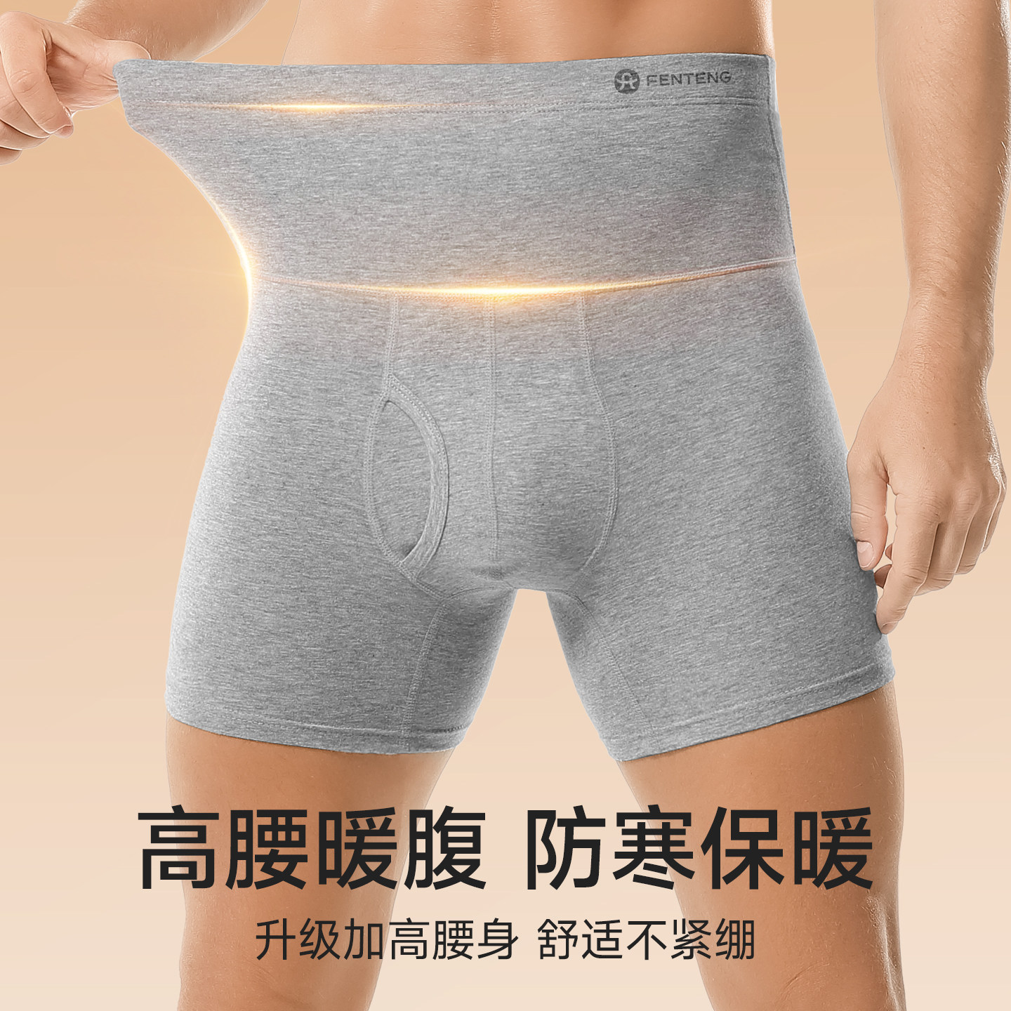 📚 芬腾纯棉男士保暖内裤男款高腰收腹防磨腿四角加肥加大爸爸平角裤