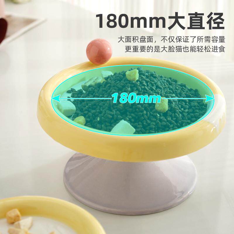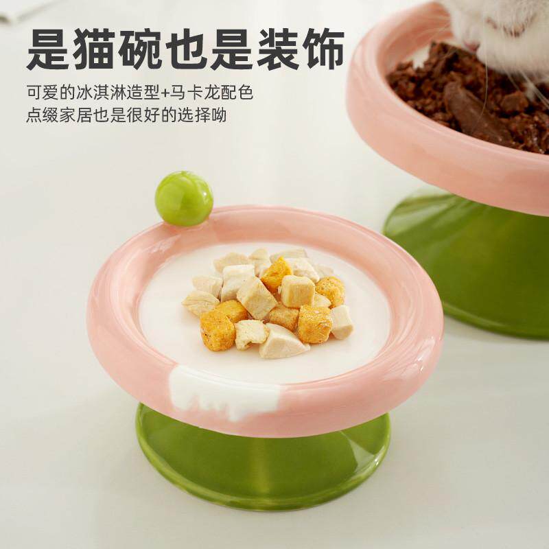 📚 喵仙儿猫碗高脚浅口猫咪碗陶瓷大口径宠物猫狗食盆斜口防打翻碗盘