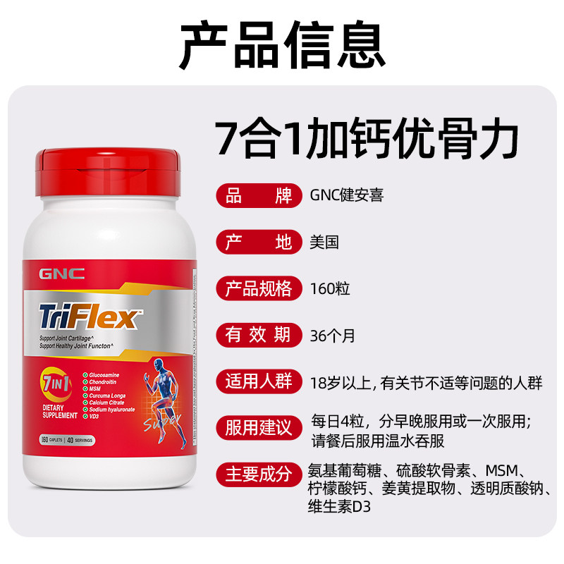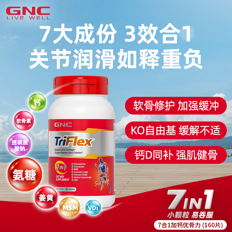 📚 GNC健安喜七合一优骨力氨糖软骨素关节维骨力160片*2瓶补钙中老年