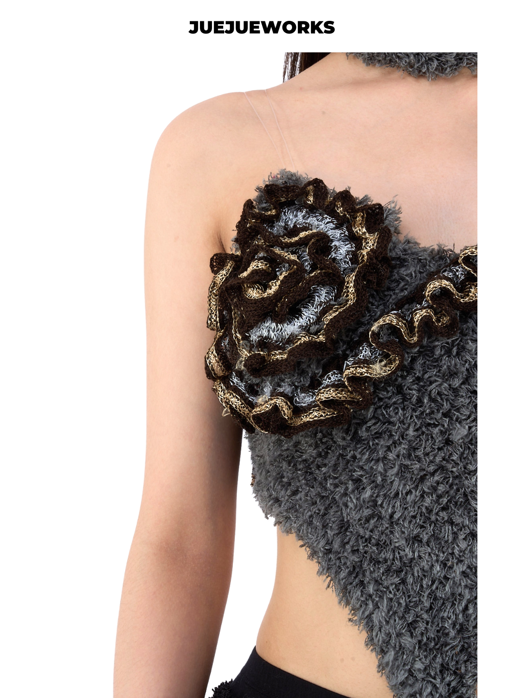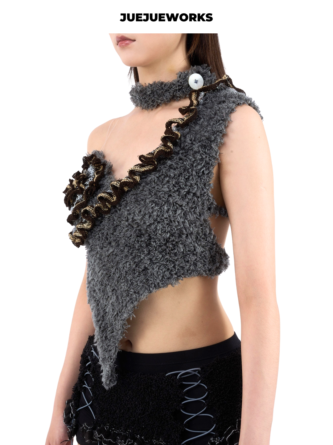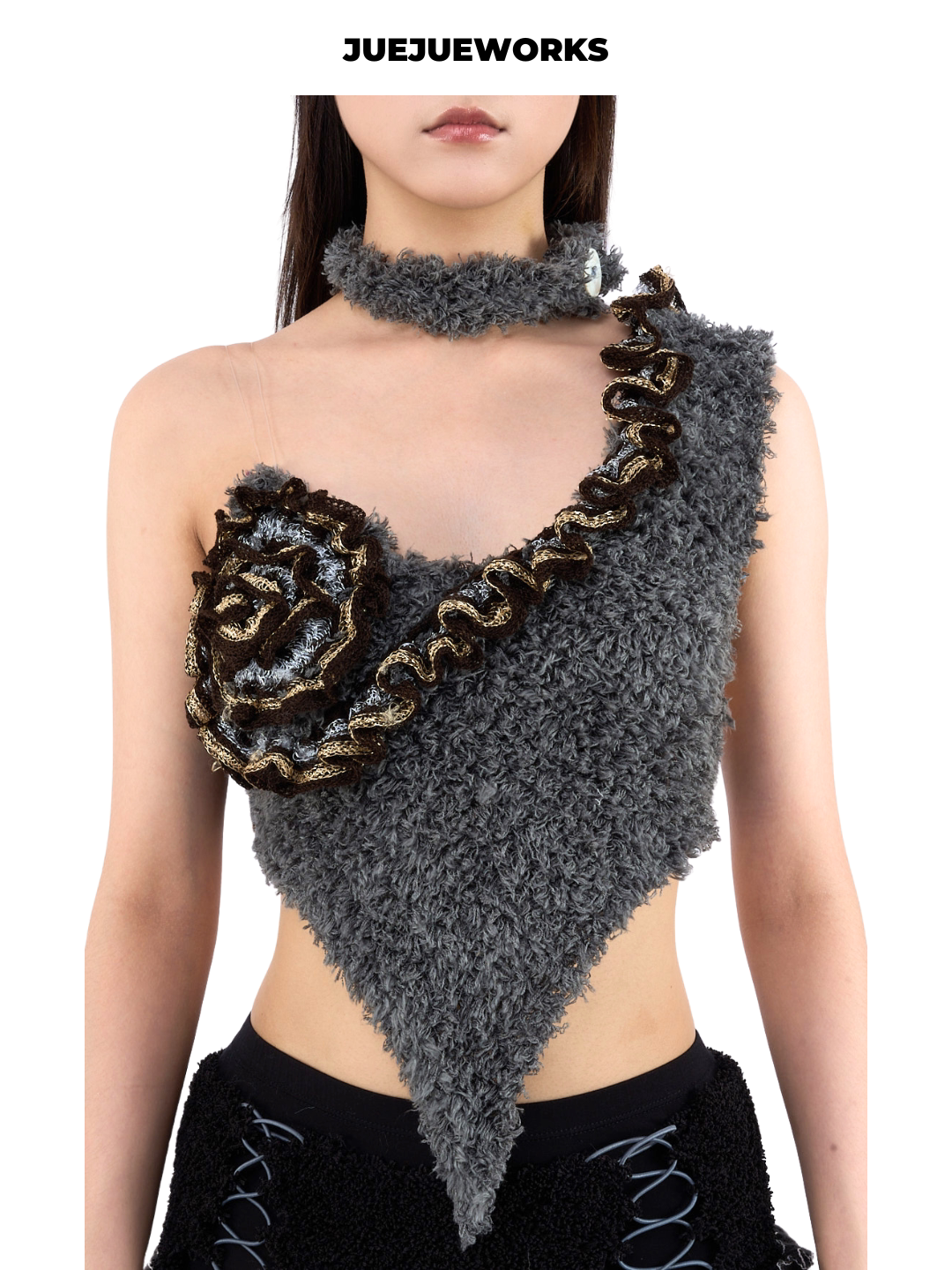📚 特价8折!!!JEUEJUEWORKS扣子choker单花背心纯手工不对称上衣