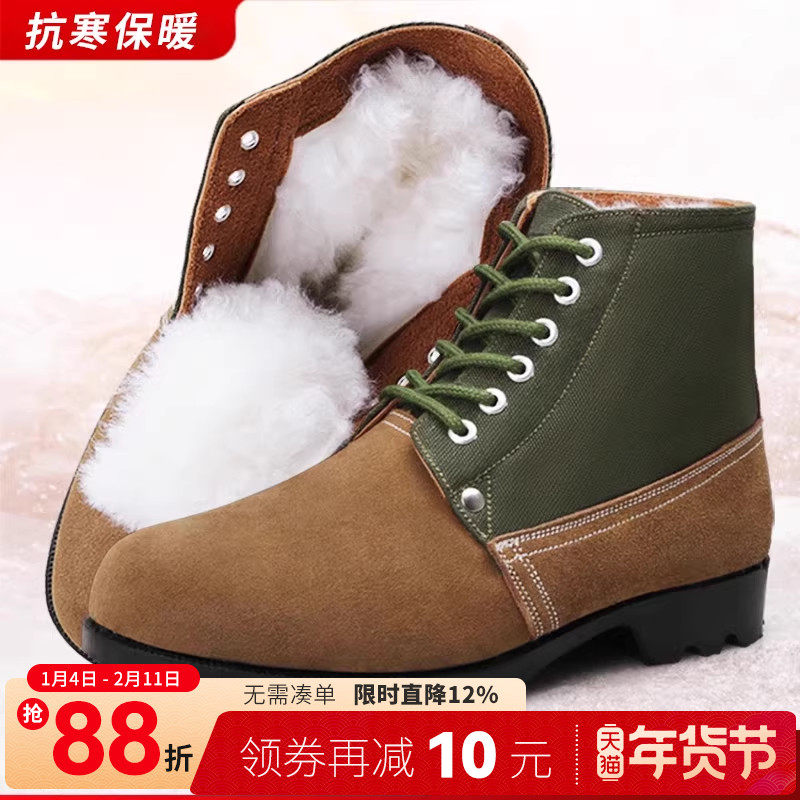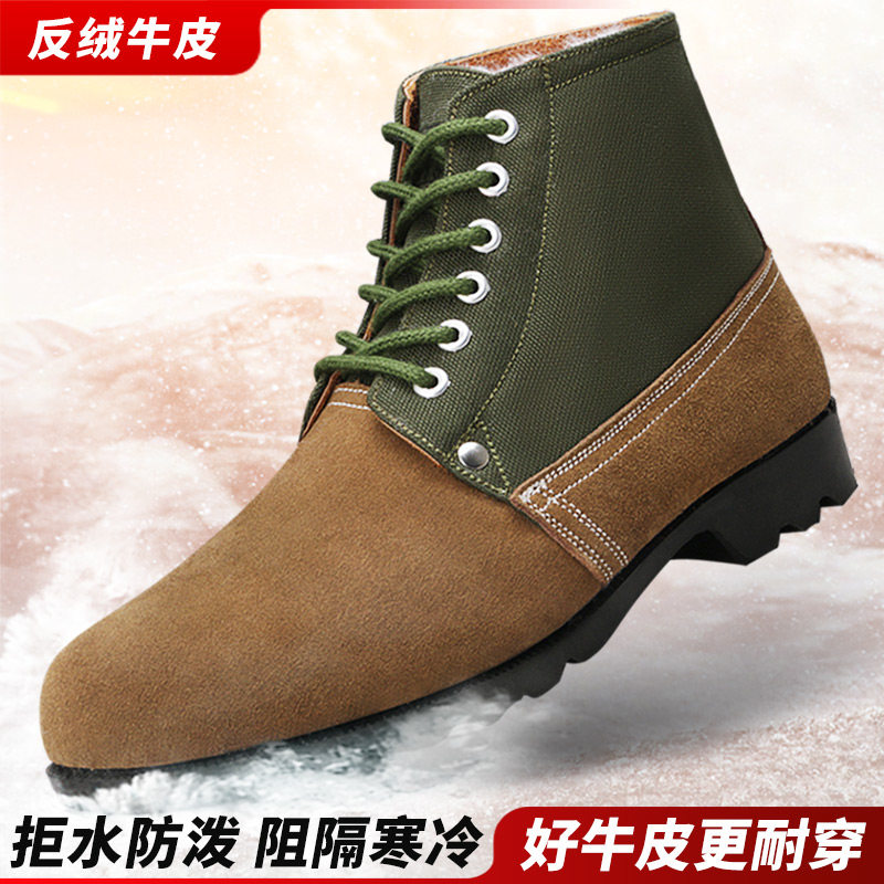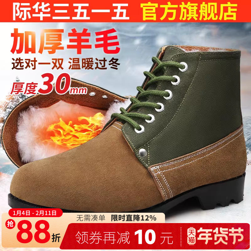 📚 际华3515强人羊毛靴加绒加厚翻毛皮鞋劳保鞋老式大头鞋棉靴防护靴