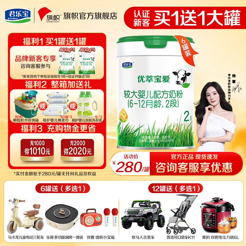 📚 旗帜奶粉君乐宝优萃宝爱2段较大婴儿配方牛奶粉二段800g*6