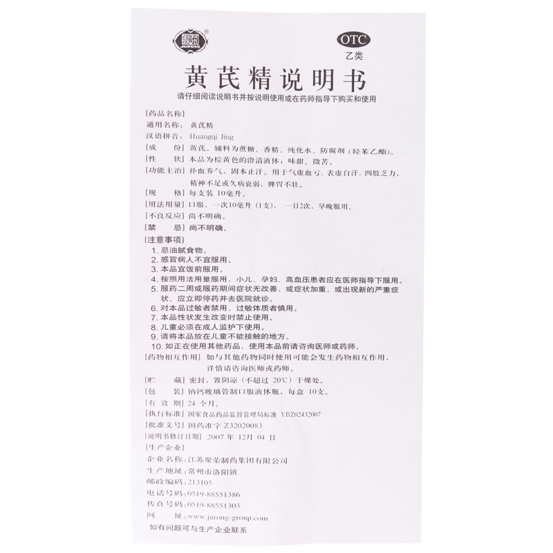 📚 聚荣 黄芪精 10ml*10支/盒 补血养气固本止汗气虚血亏正品保证