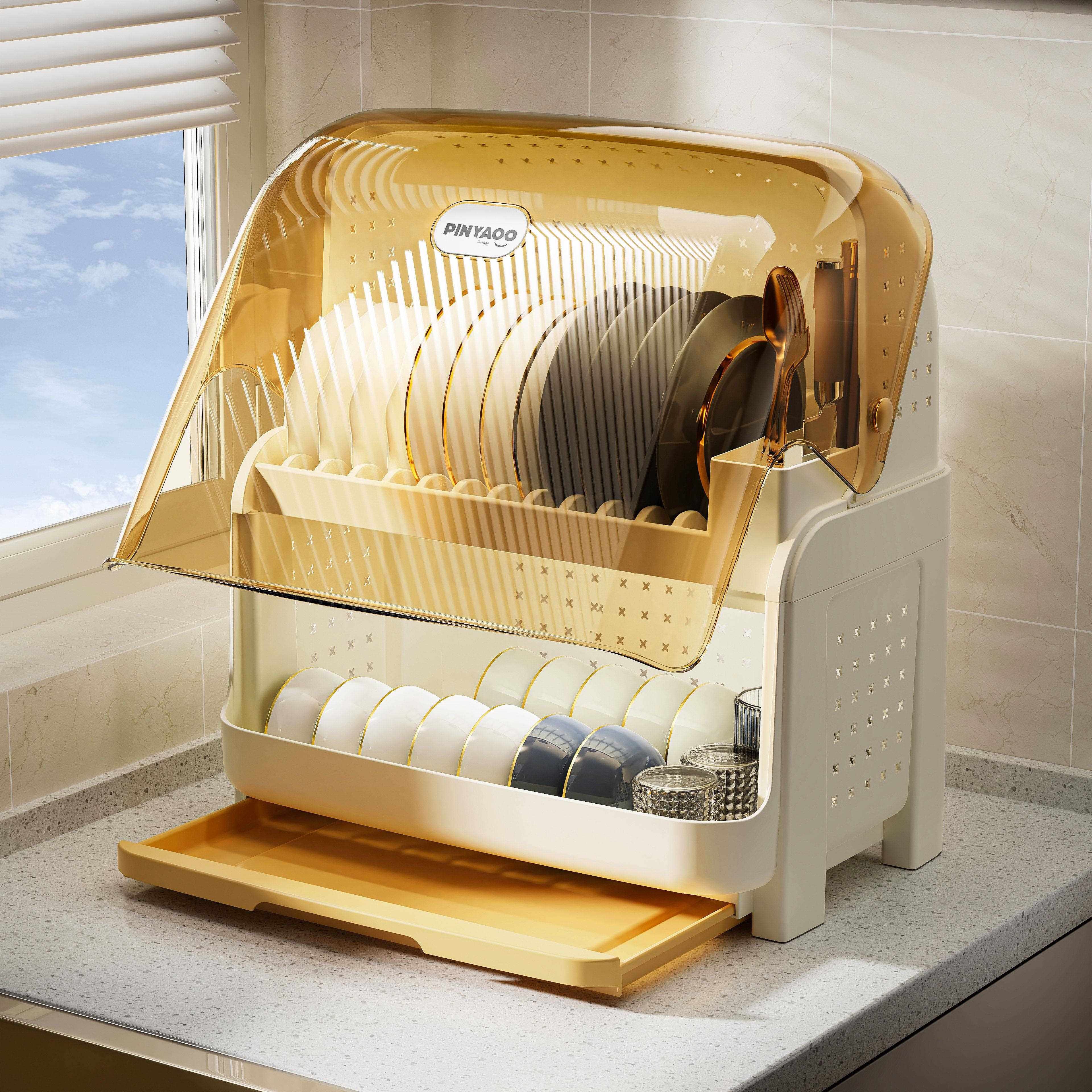 📚 盘厨房放水碗筷收纳盒家面用RLA台沥架餐具碗碟置物架防尘碗柜装