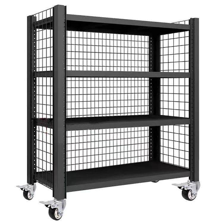 📚 重型加厚仓库仓储货架带轮子带网格可移动置物架多层家用调节
