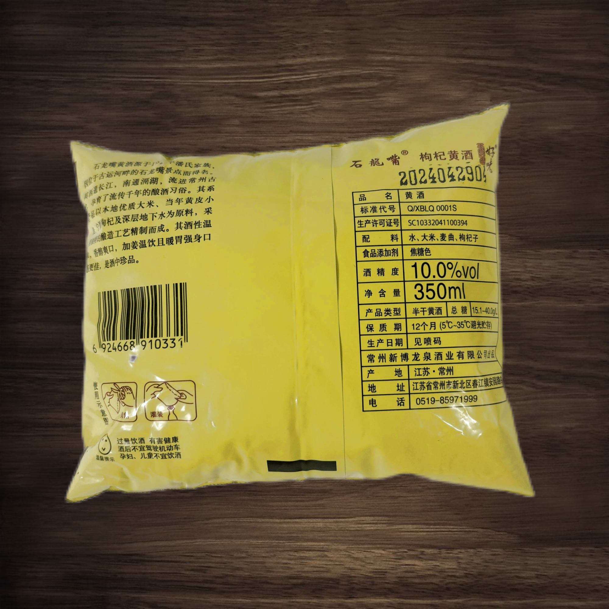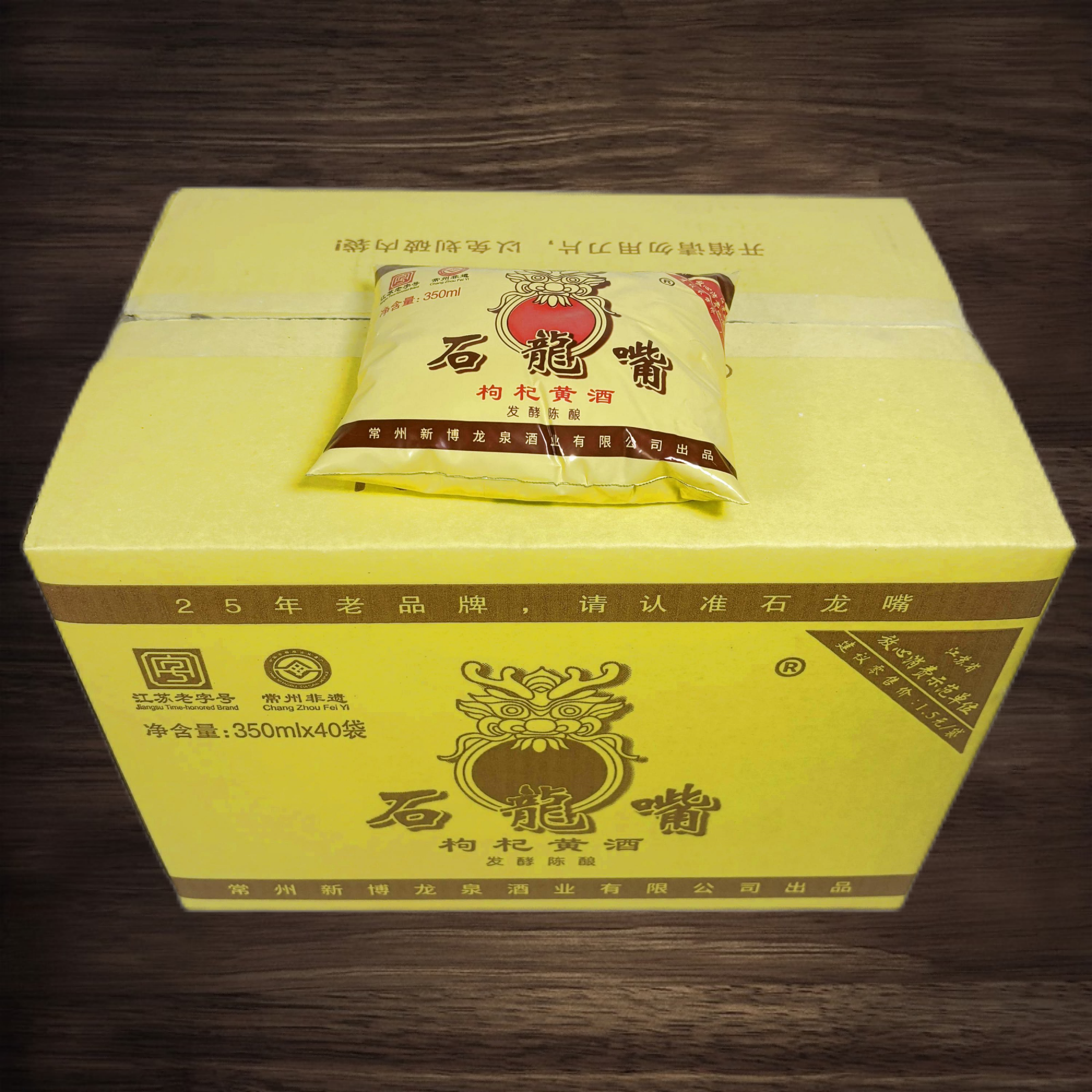 📚 常州石龙嘴枸杞黄酒40袋*350ml袋装江苏特产酿造料酒
