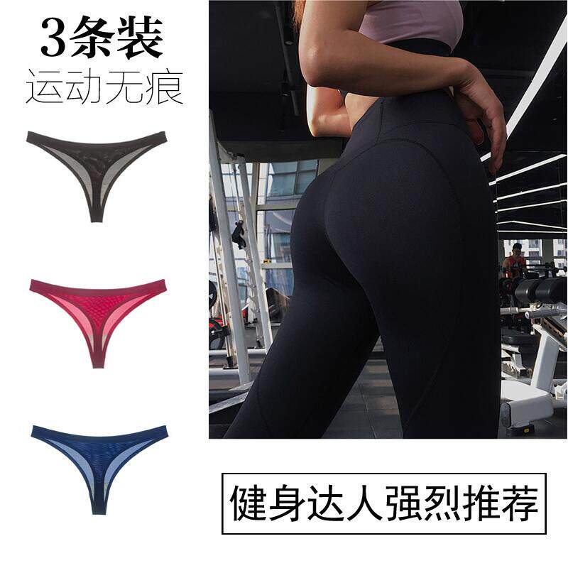 📚 3条低腰欧美性感冰丝黑色女士丁字裤运动健身一片式无痕t字裤女夏
