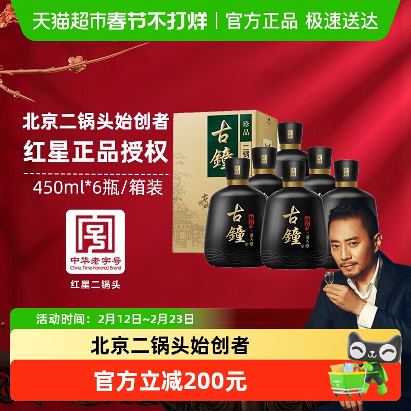 📚 红星二锅头珍品古钟46度 450ml*6 整箱装清香型白酒宴请送礼