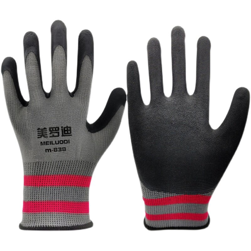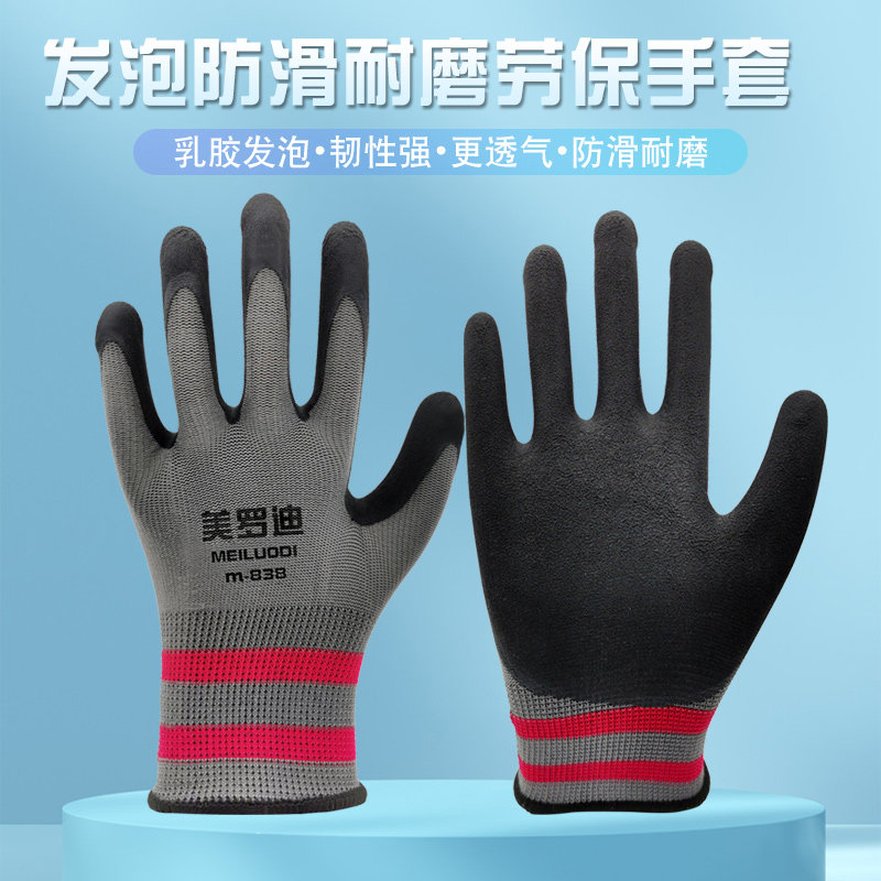 📚 美罗迪手套乳胶发泡防滑耐磨加厚工厂工地搬运男女浸胶防护手套