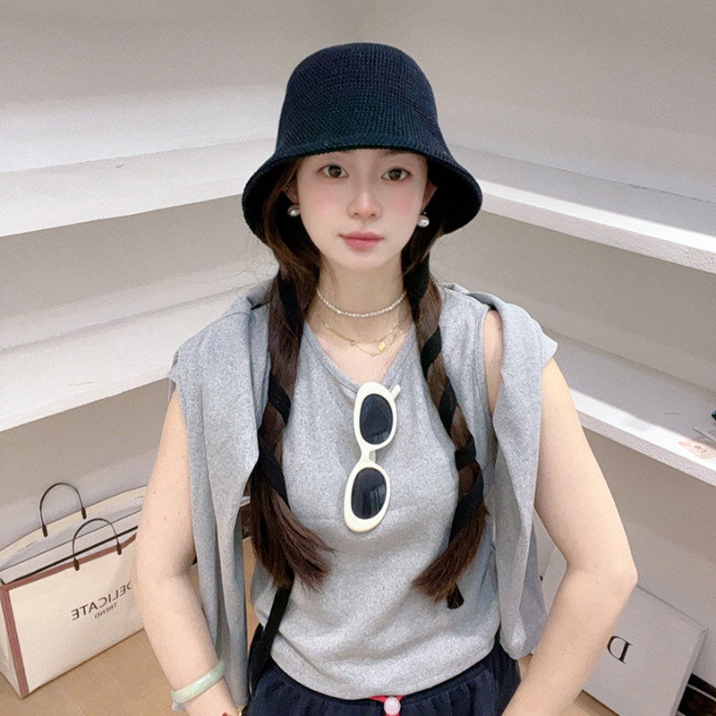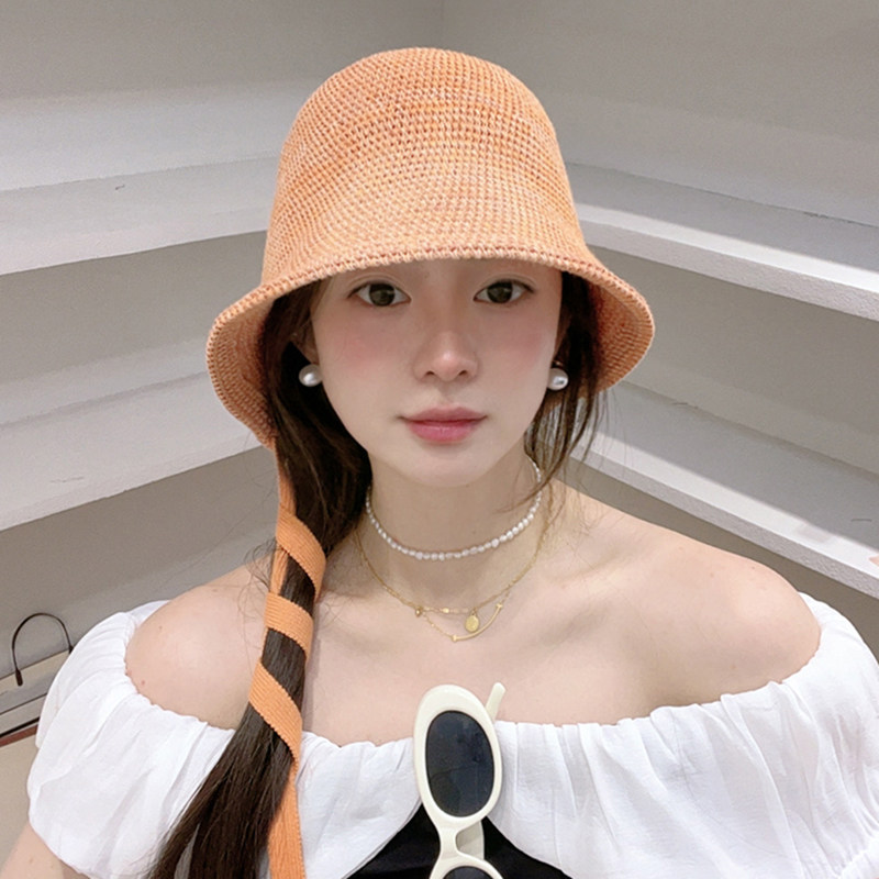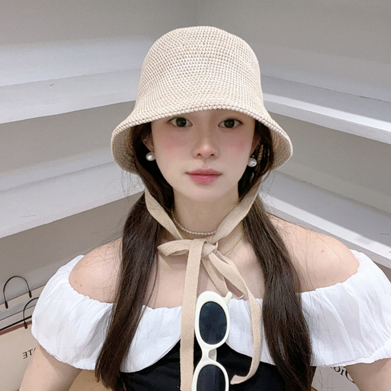 📚 日系防晒飘带倪妮同款渔夫帽子女2025新款透气针织盆帽夏季遮阳帽