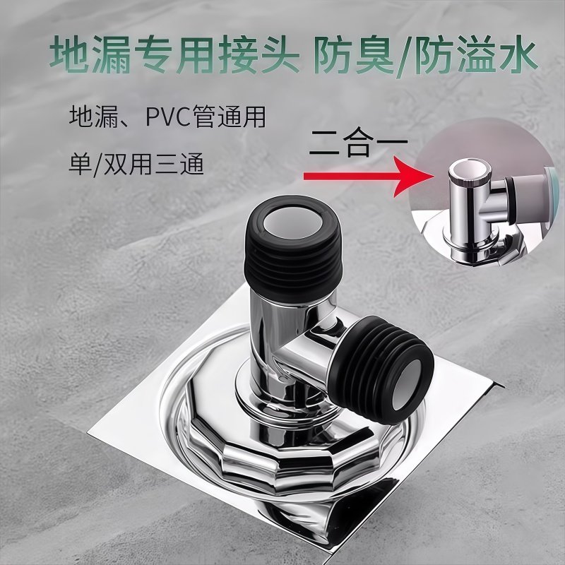📚 洗衣机下水管三头通地漏双排水专用接头排水管道二合一防臭防溢水