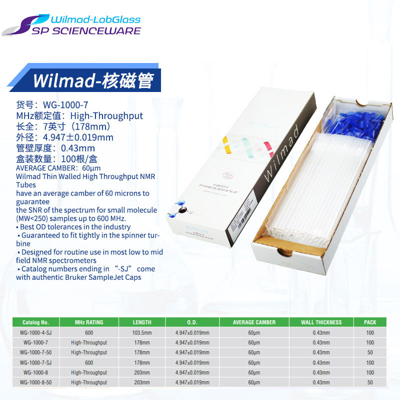 📚 Wilmad 玻璃核磁管 氘代氯仿重水试剂 5mm 带帽 100只1盒美国进口核磁共振NMR管Norell微量