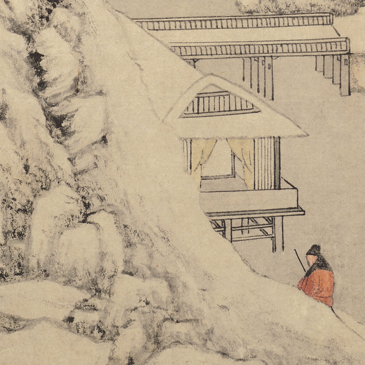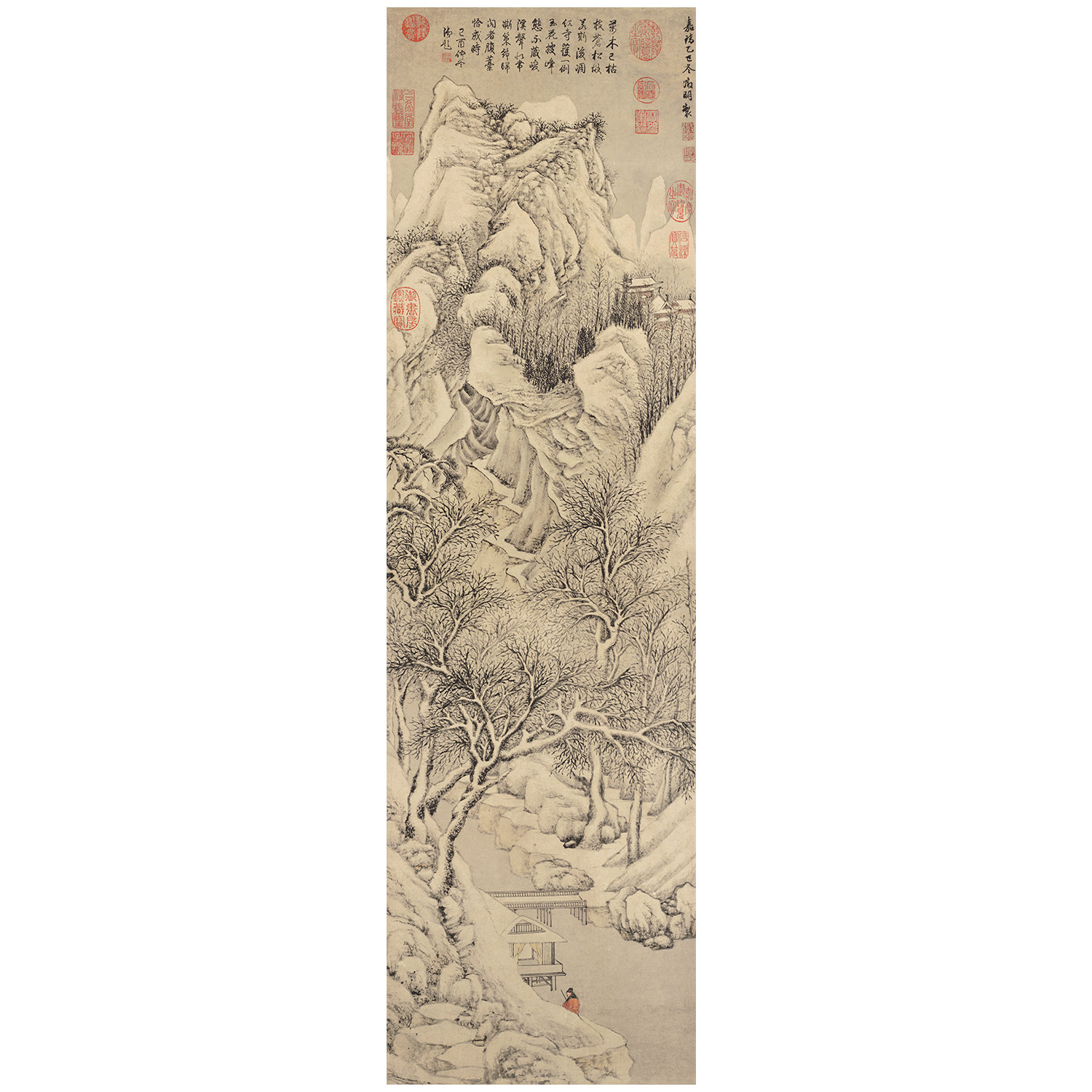 📚 明 文徵明 雪景山水图临摹画稿 微喷打印原大山水雪景画临摹底稿