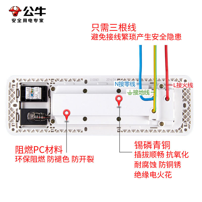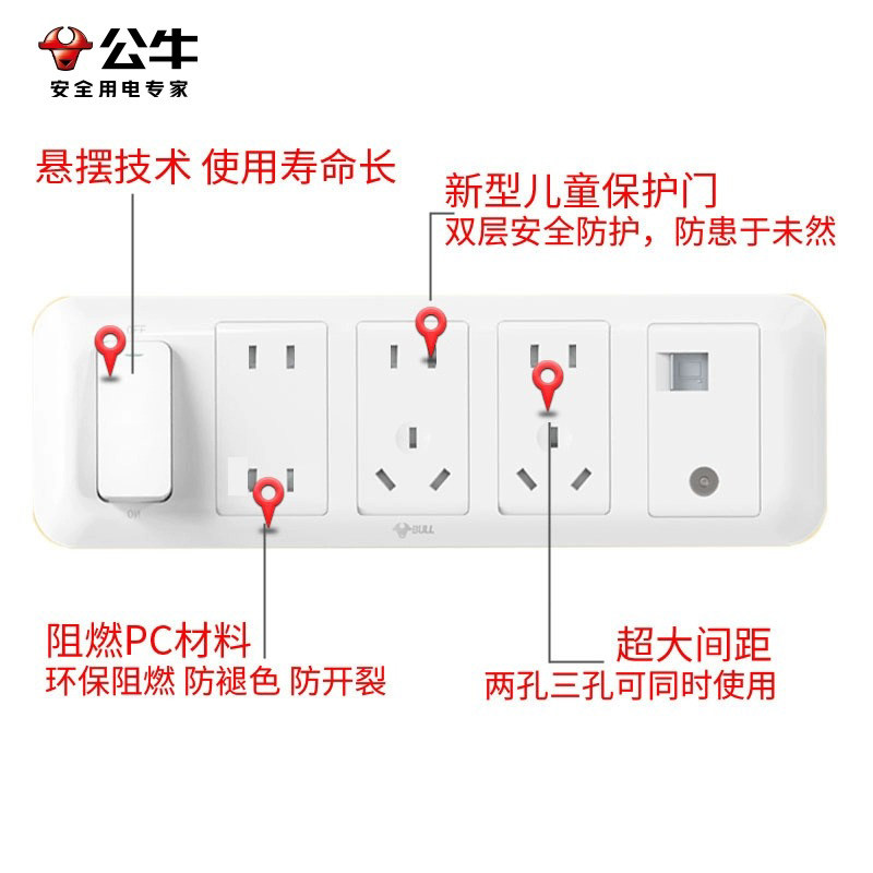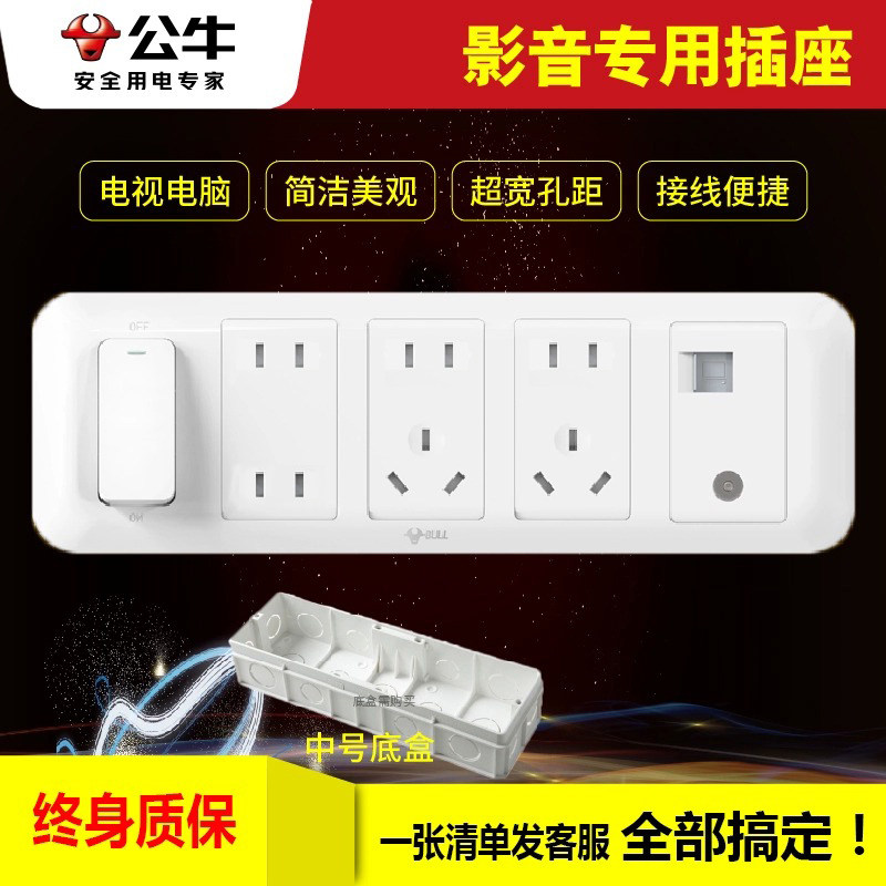 📚 公牛开关插座面板一开带五孔多孔家用TV电视网络客厅电脑电视插座