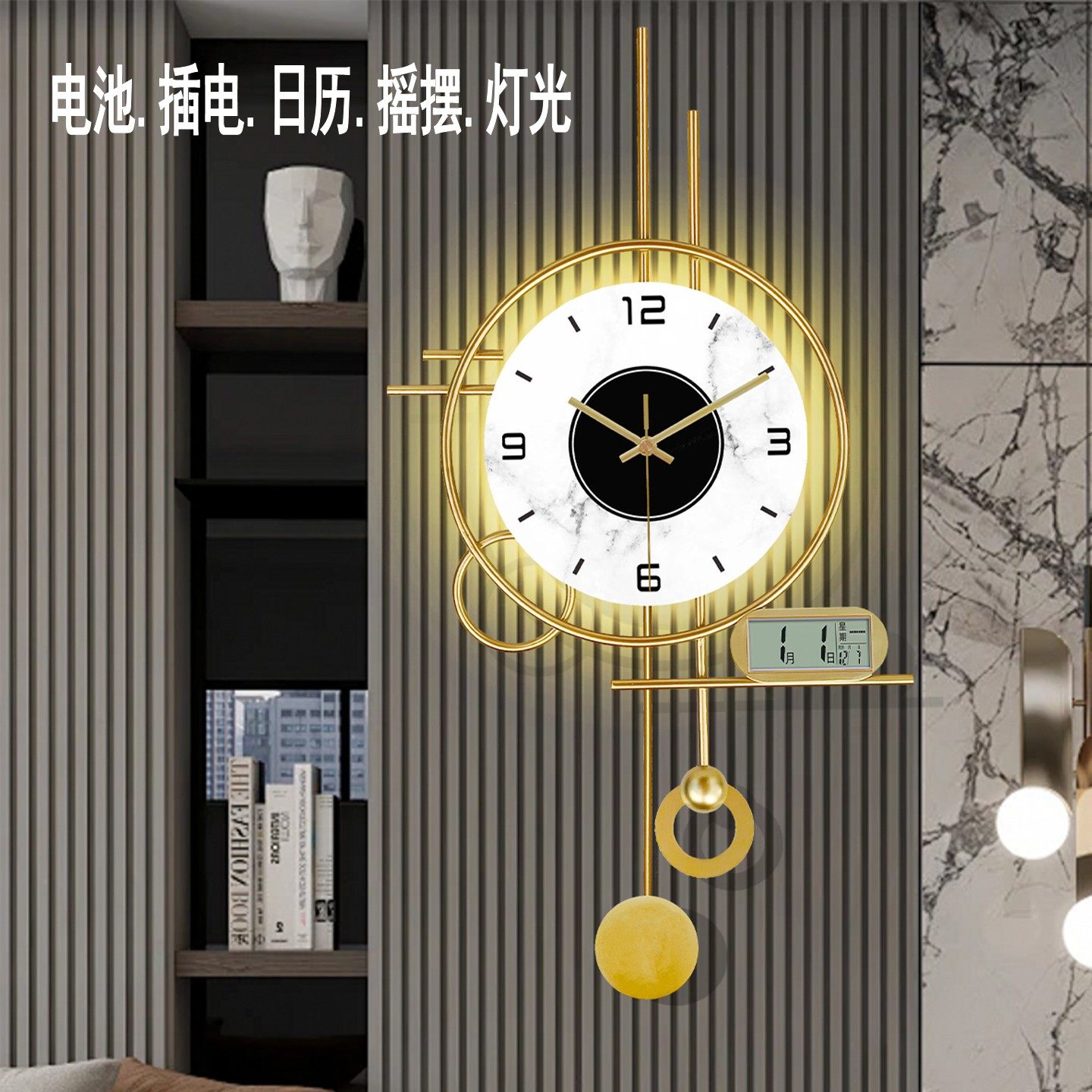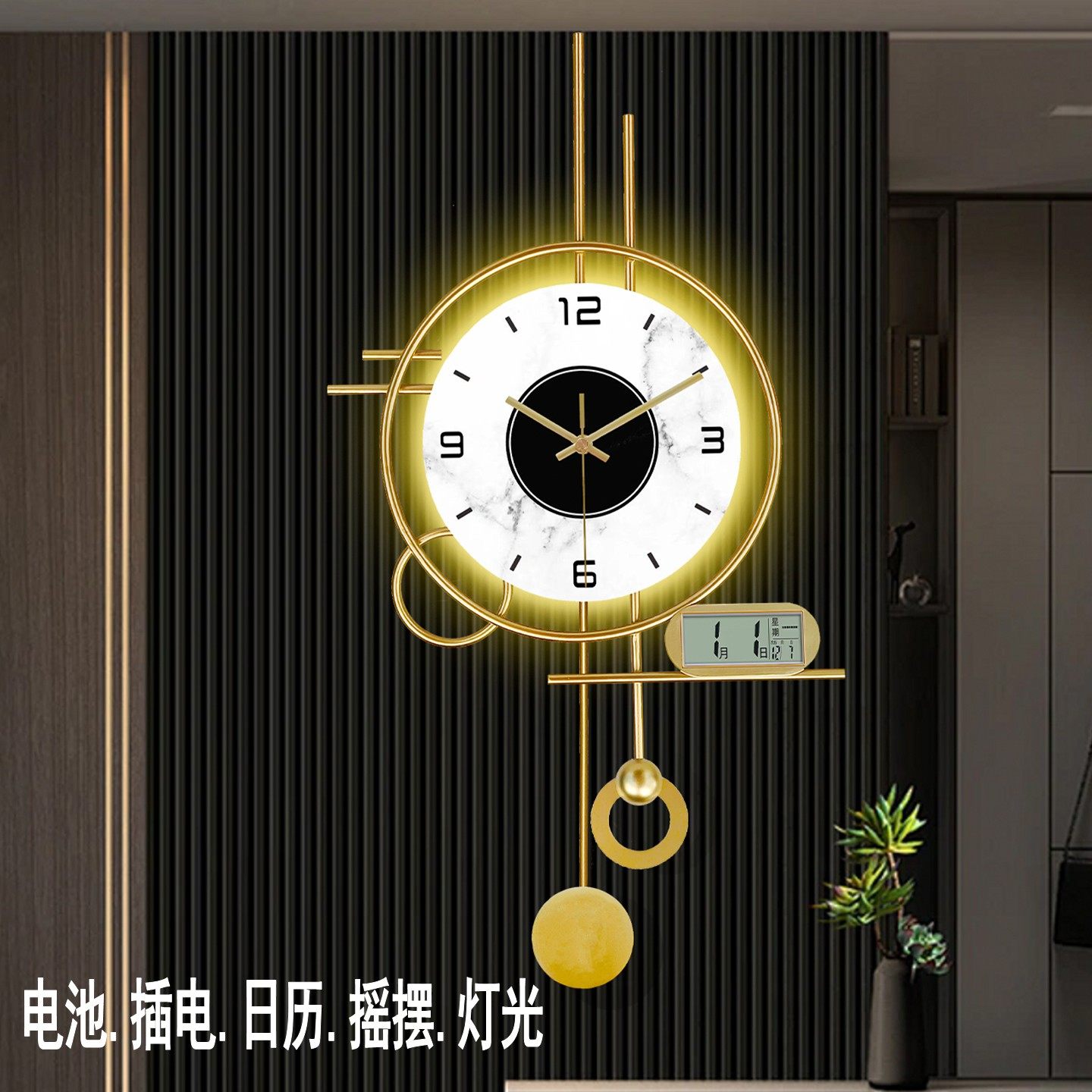 📚 2025新款摇摆客厅万年历木栅格挂钟表轻奢创意背景墙灯光时钟静音