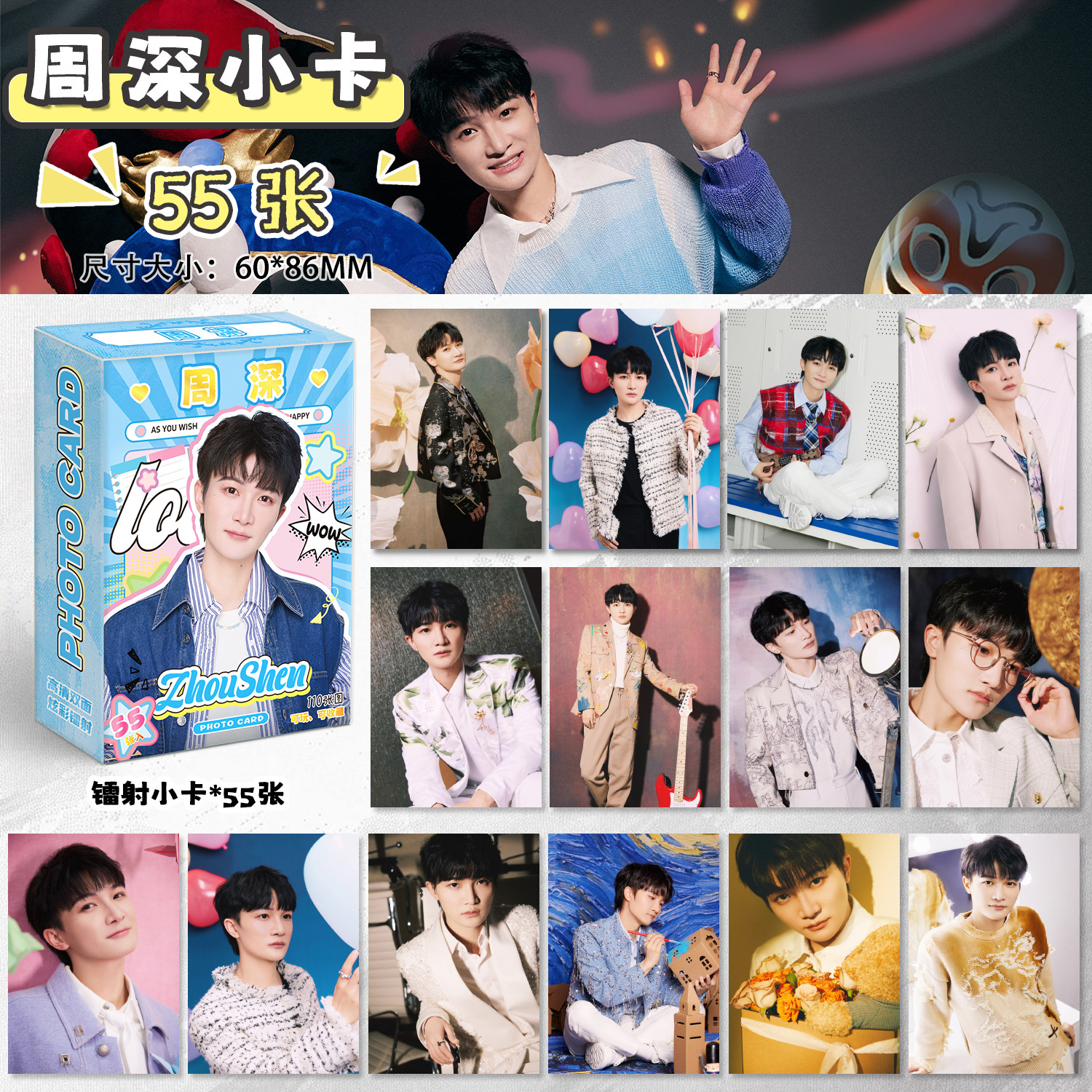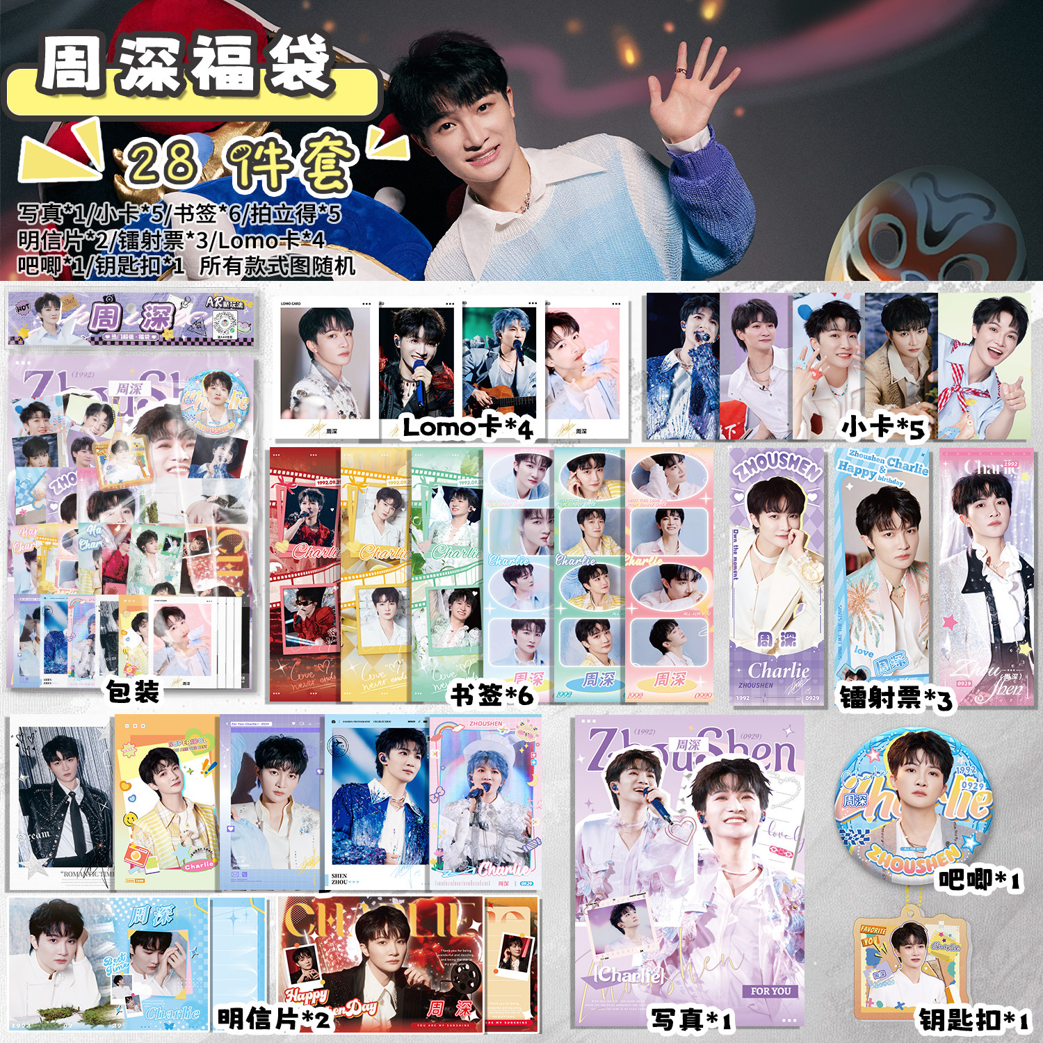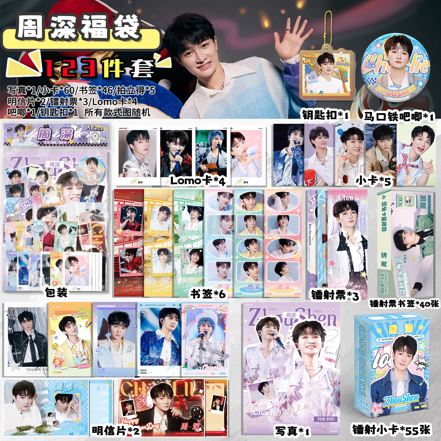 📚 周深周边福袋写真拍立得小卡镭射票书签明信片礼物吧唧徽章