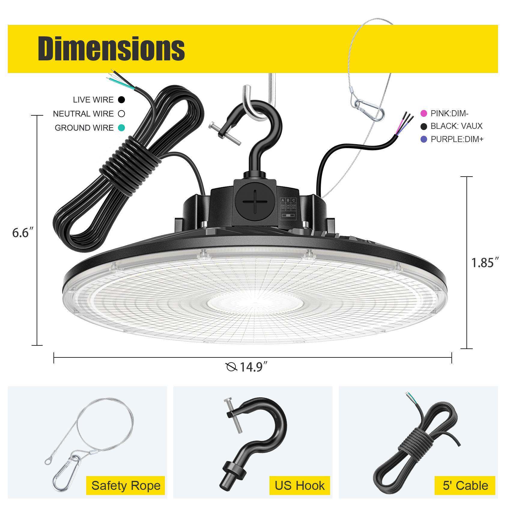 📚 UL DLC认证LED工矿灯300W240W150W仓库商店飞碟灯美仓现货