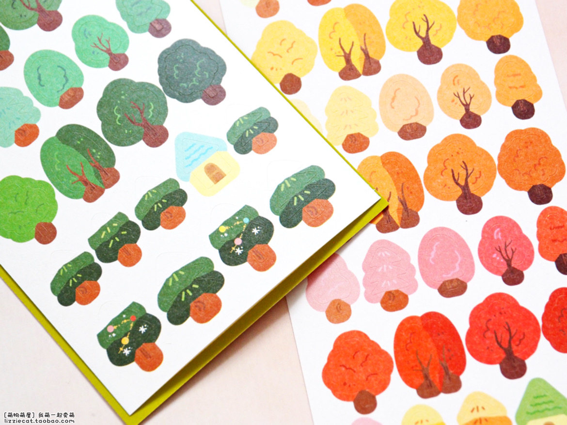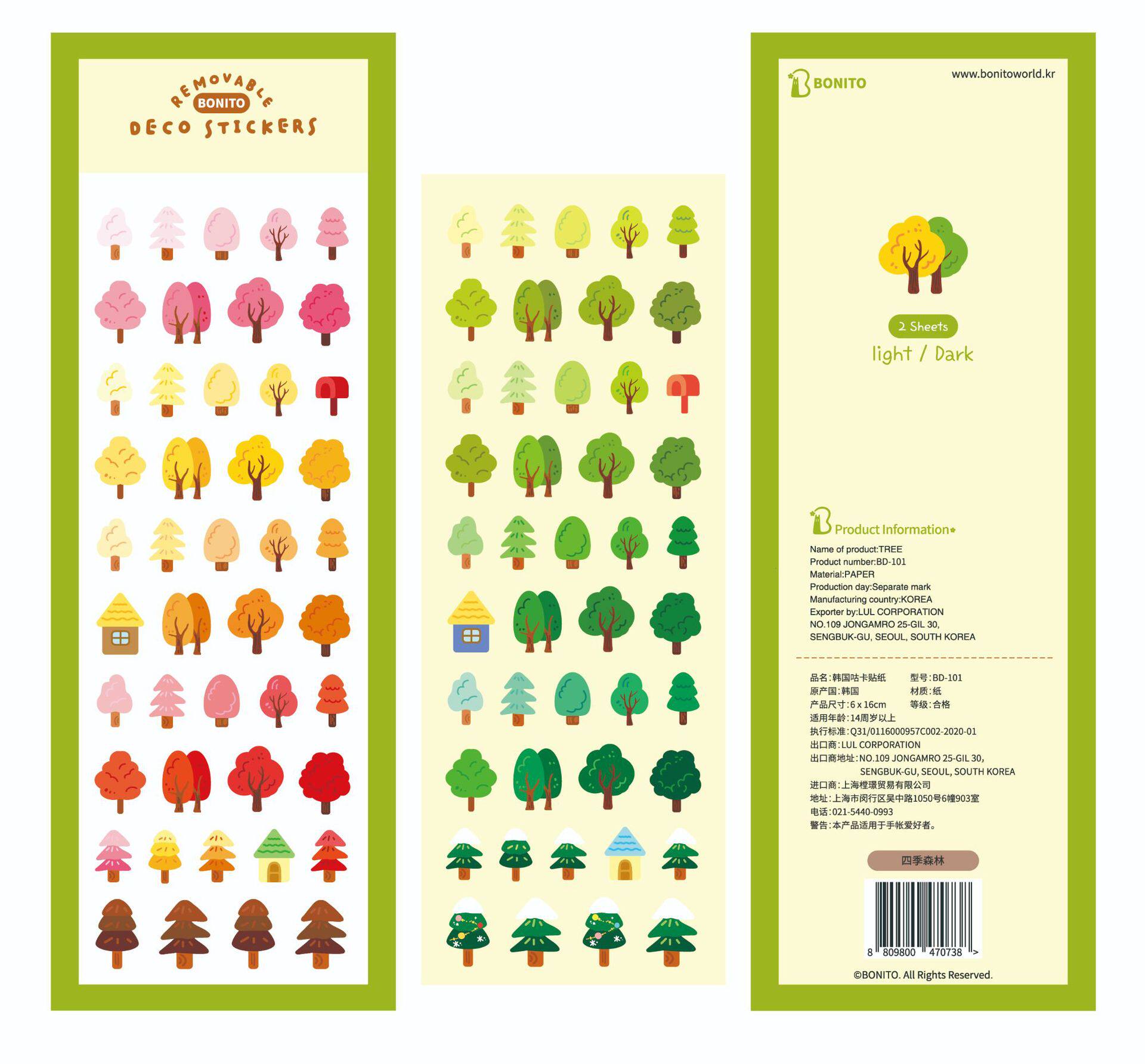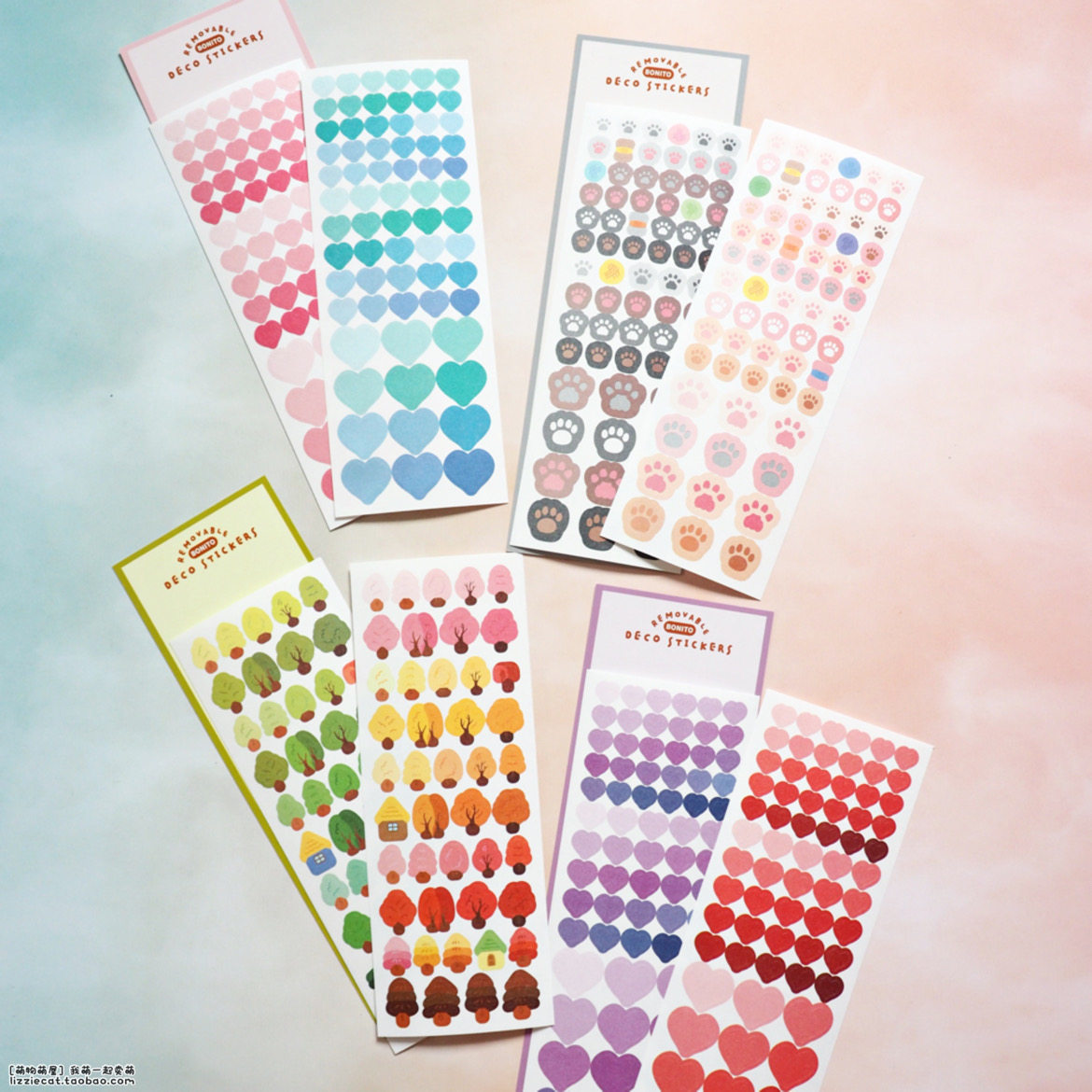 📚 韩国Bonito迷你标记贴 粉紫心形猫爪肉垫森林树木手帐装饰diy贴纸