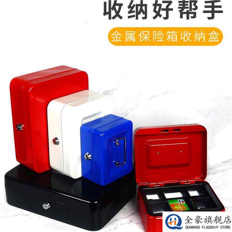 📚 新防火储物盒带锁小收纳铁盒家用证件保险箱小型迷你钱箱手提保管