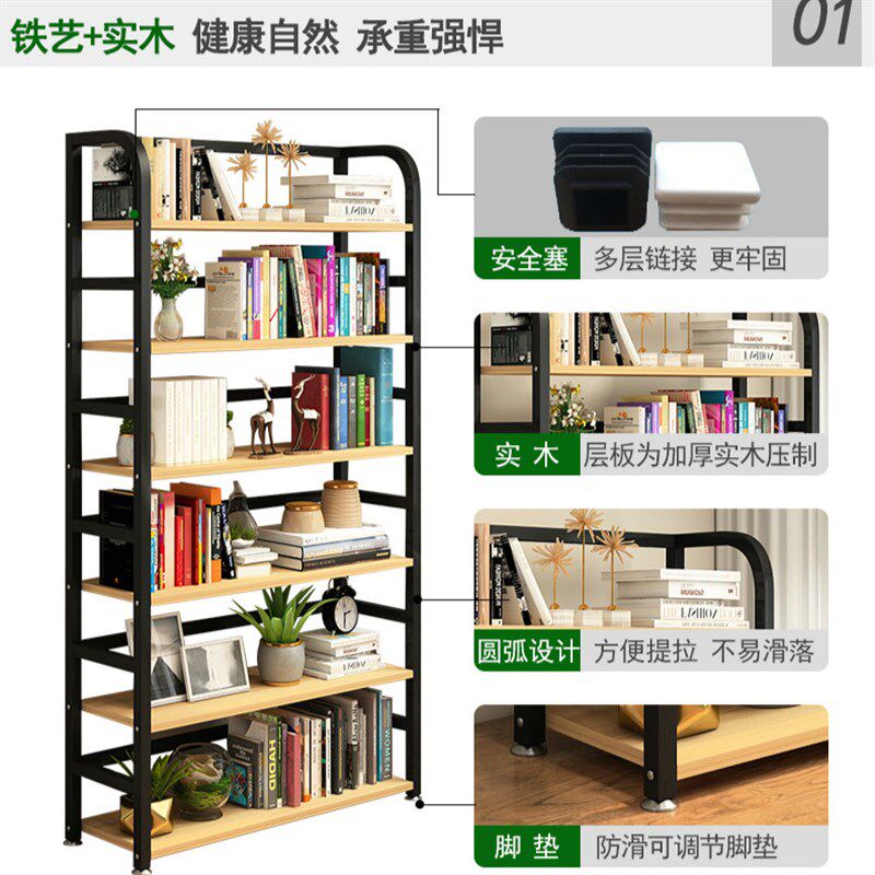 📚 钢制书架置物架落地窄50长70宽90深E25cm卧室靠墙小型收纳钢木书