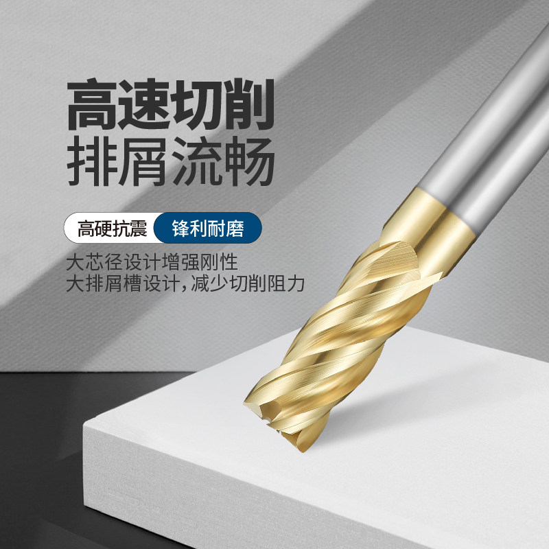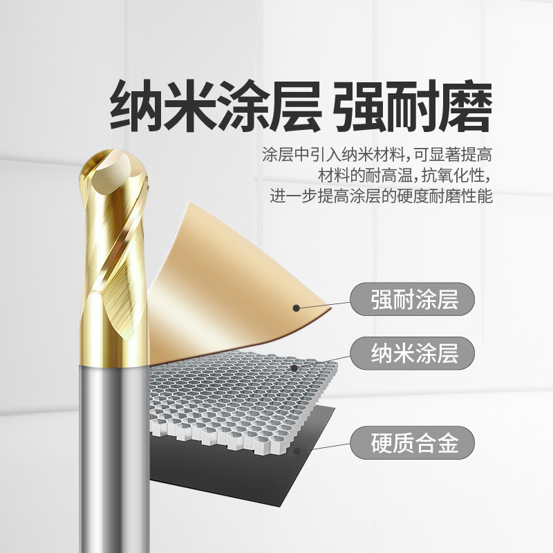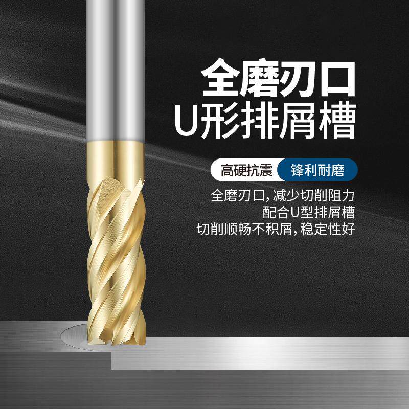 📚 钛合金专用高效钨钢铣刀进口涂层四刃高温合金GH4169TC4平底球头