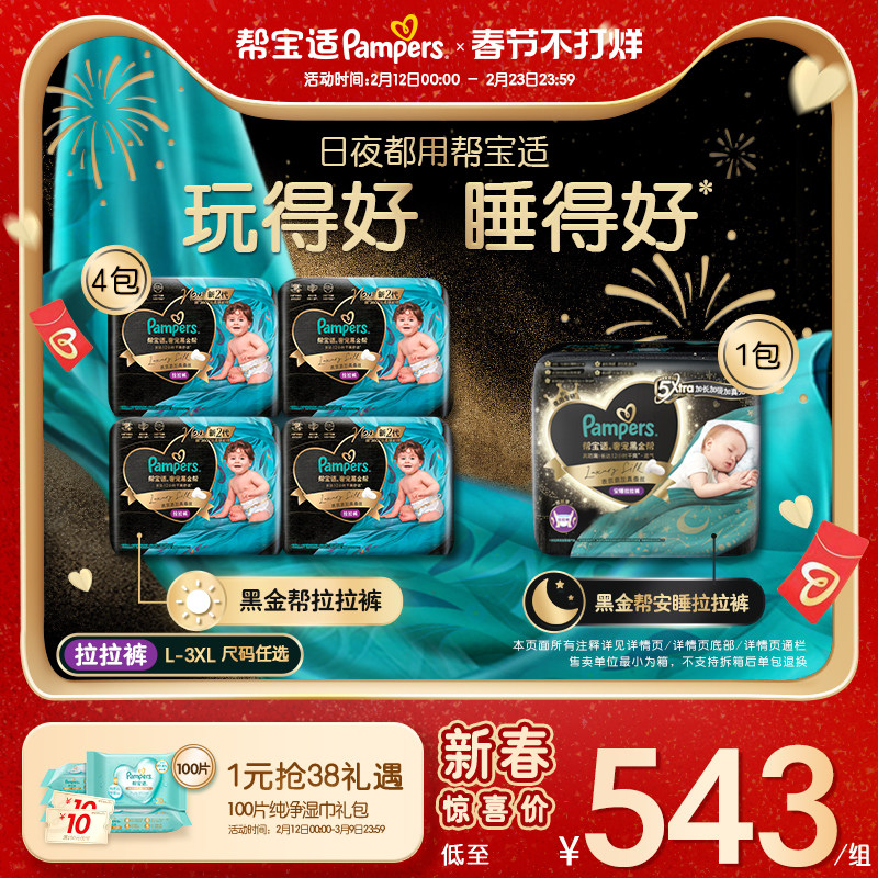 📚 【日夜组合】帮宝适黑金帮拉拉裤*2箱+奢宠安睡拉拉裤L-XXXL