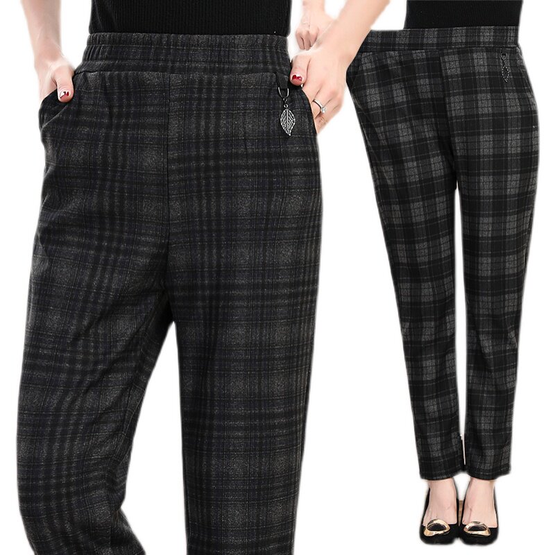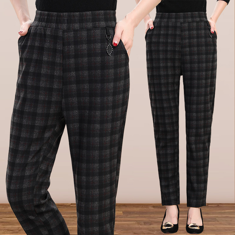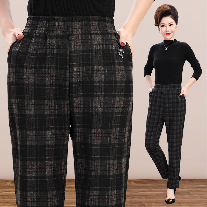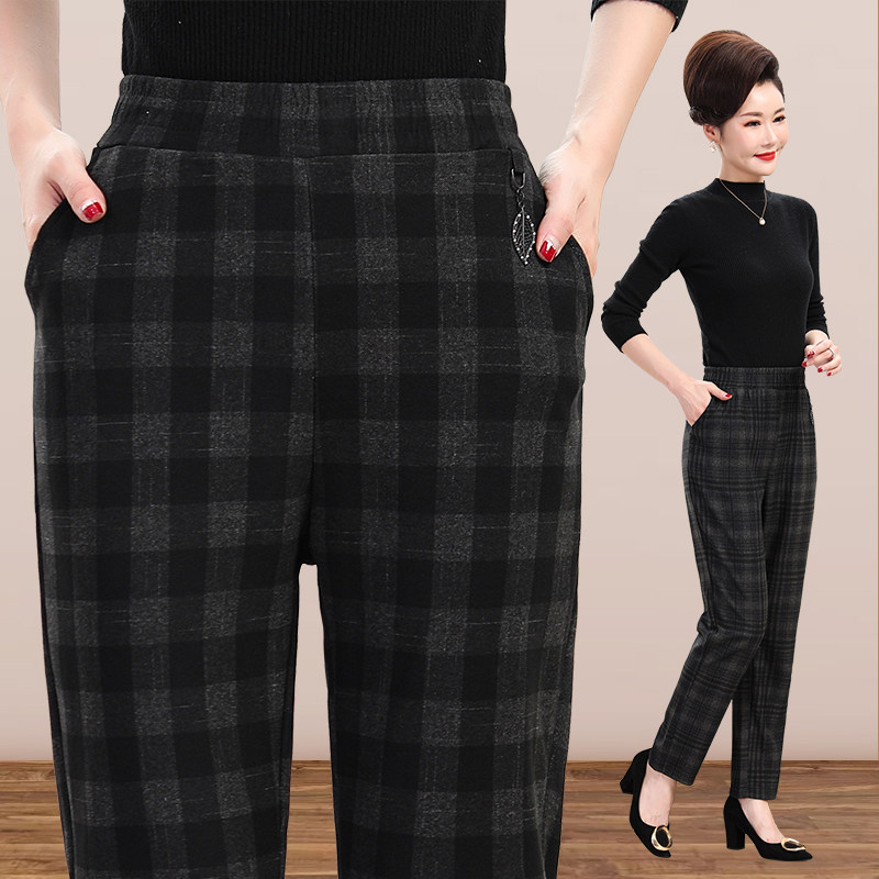 📚 2022秋季新款中老年外穿裤子修身显瘦高腰长裤妈妈裤大码格子裤女
