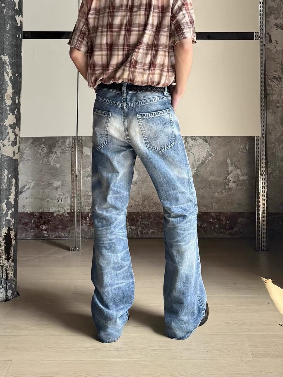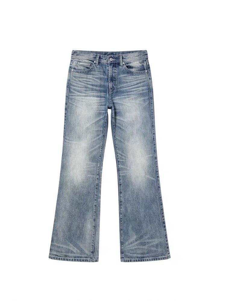 📚 新时代OG溶解蜂窝猫须内华达vintage水洗微喇冰蓝646牛仔裤