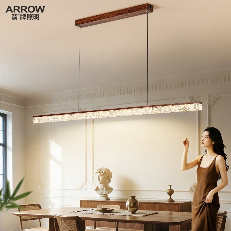 📚 箭牌中古风胡桃木色餐厅吊灯2026新款复古风餐厅灯一字长条护眼灯