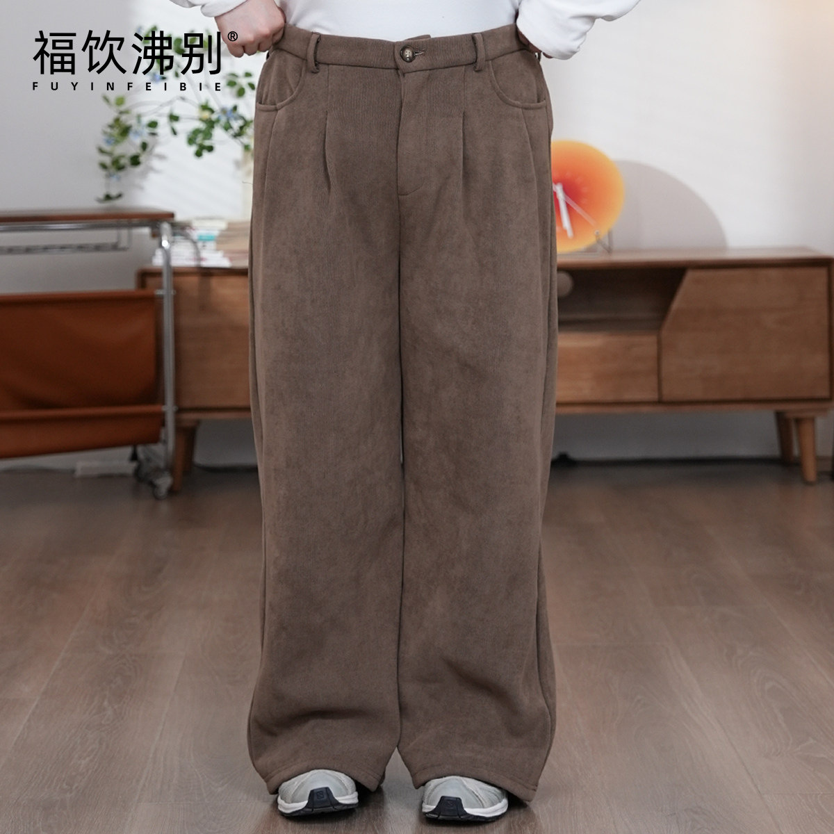 📚 福饮沸别【杏绒雅逸】大码胖mm日常加绒灯芯绒直筒休闲裤YH25184