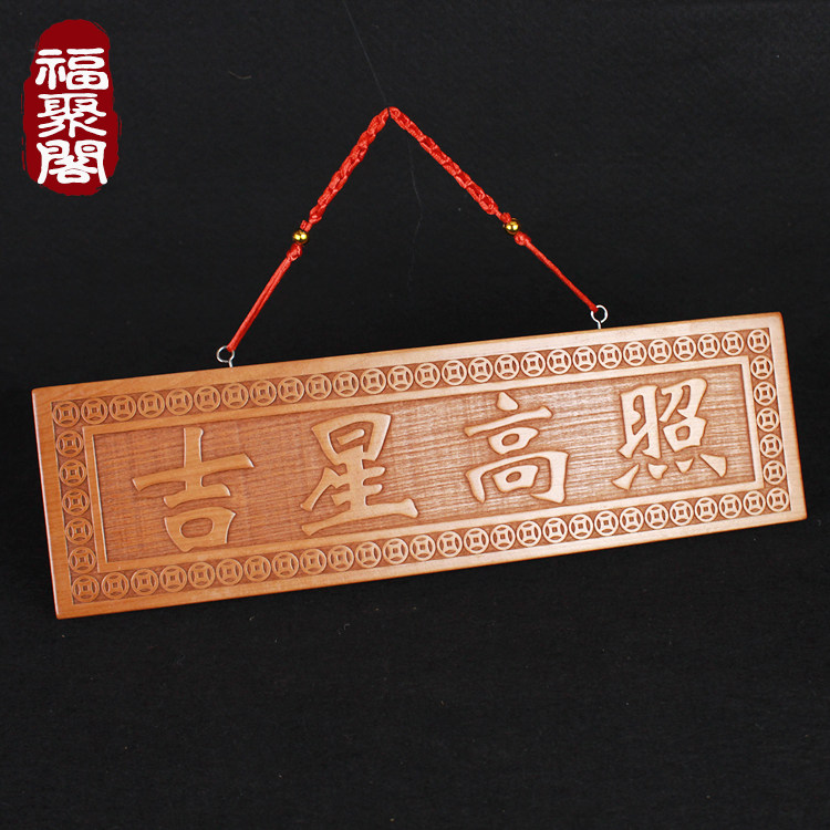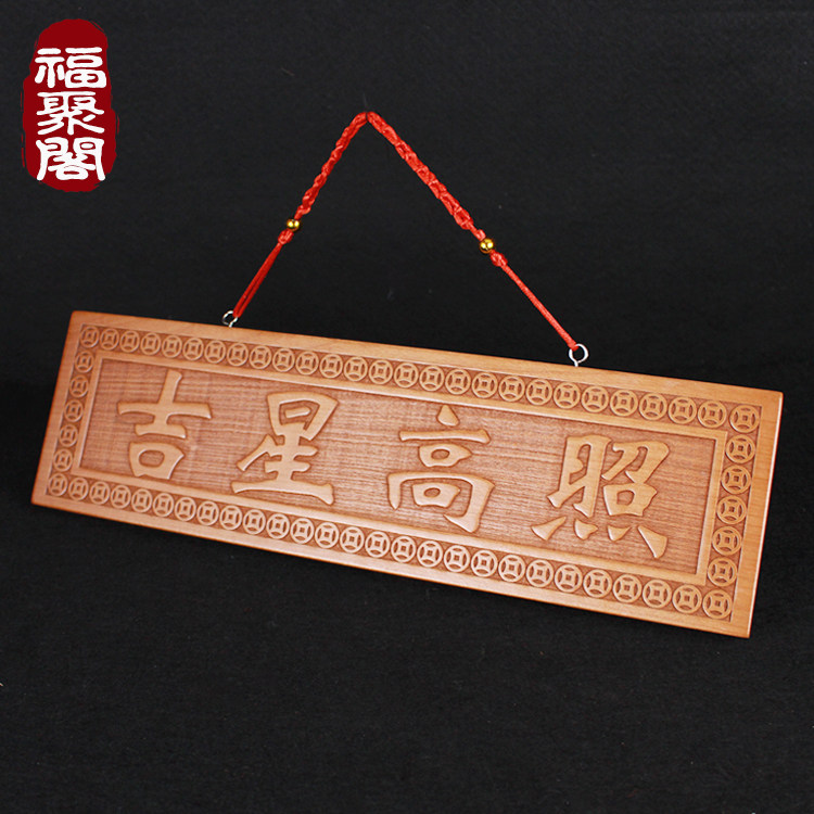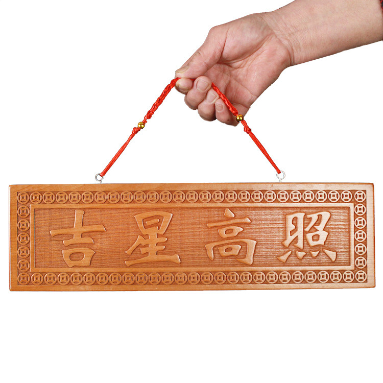 📚 桃木吉星高照门对门挂件实木雕横批竖版竖牌门牌门贴室内室外门口