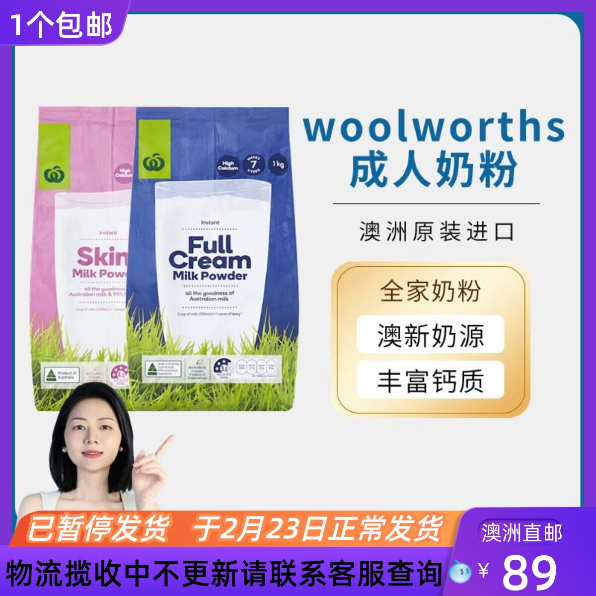 📚 澳大利亚woolworths 超市奶粉全脂脱脂速溶成人高钙牛奶粉袋装